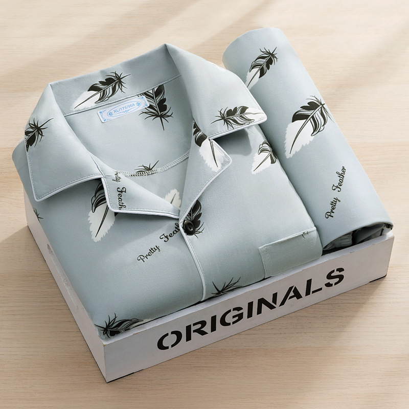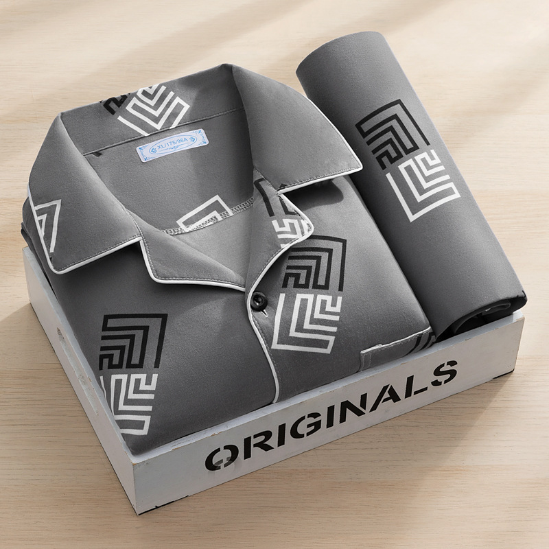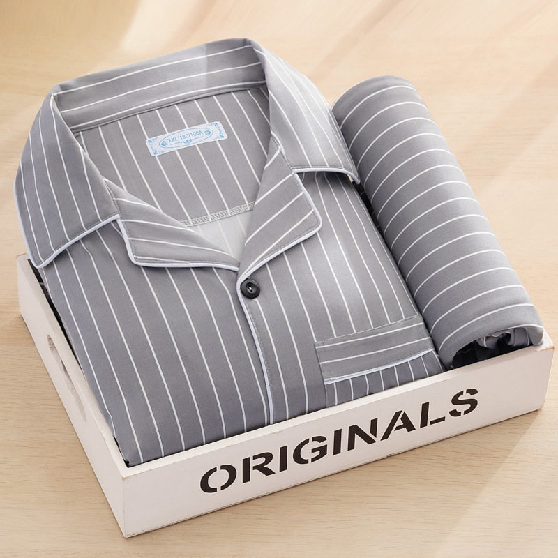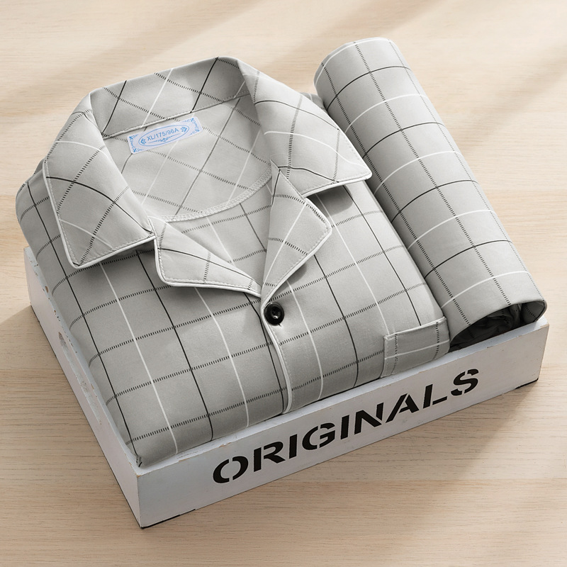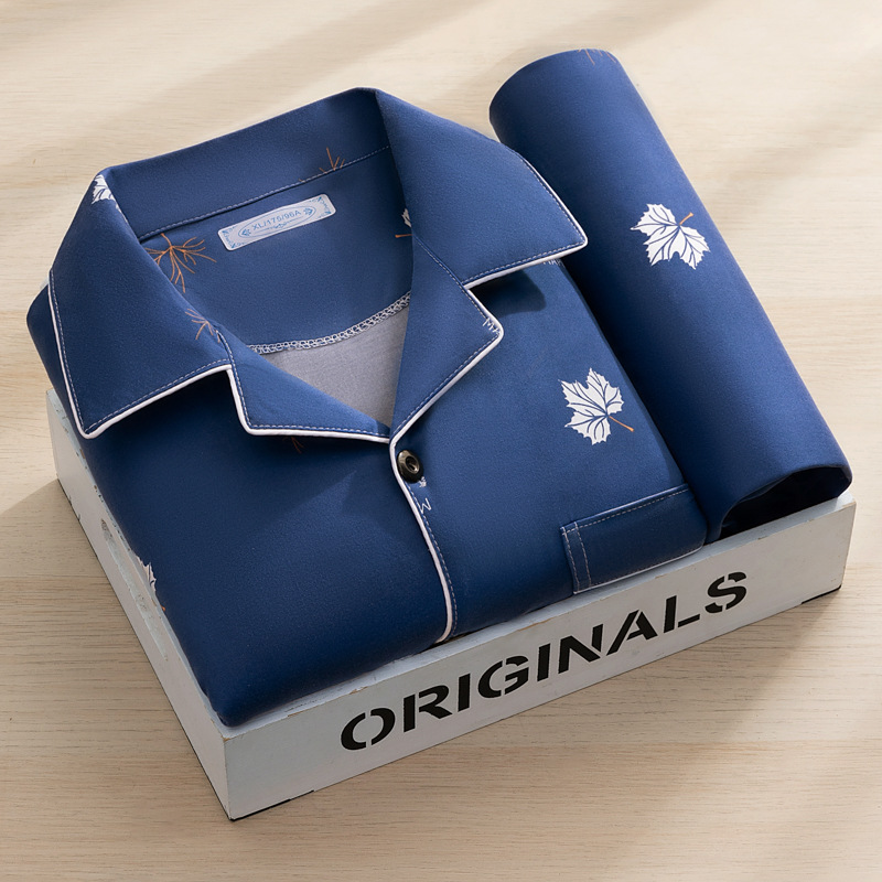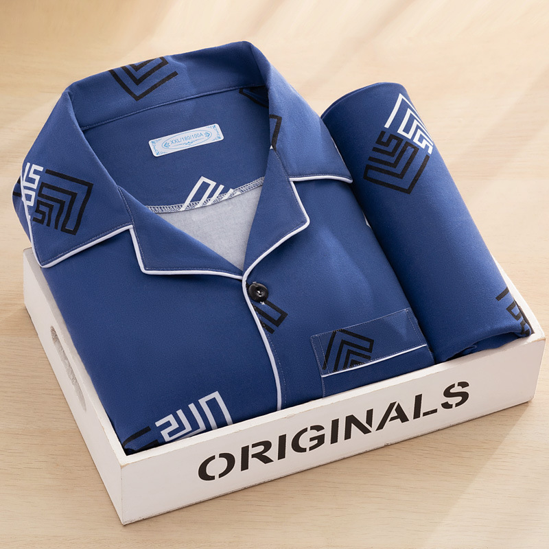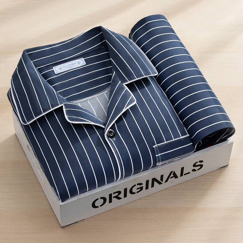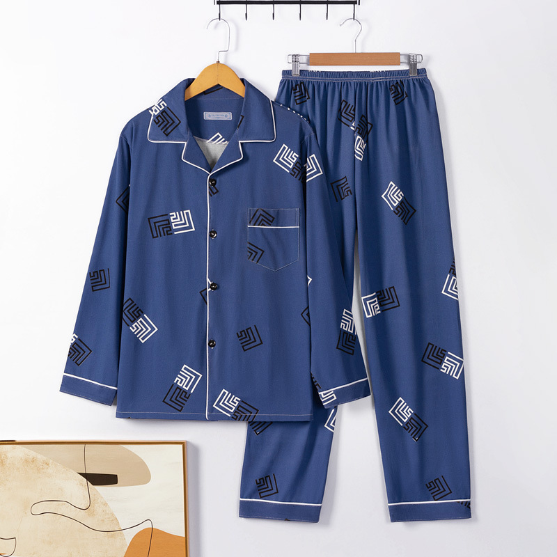 고급 모조 면 잠옷 남성용 긴팔 봄, 가을 2025 새로운 남성 캐주얼 중년 및 젊은 국경 가정복스토어 가기