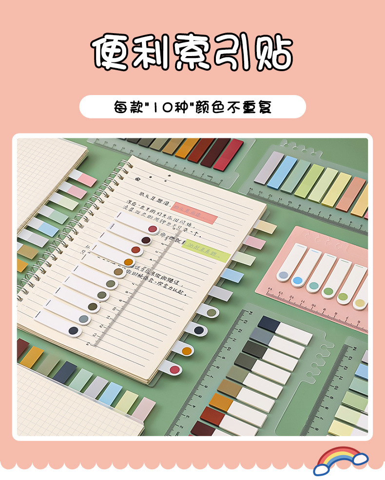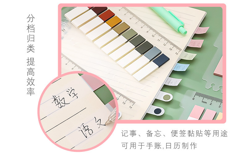 모란디 컬러 쓰기 가능한 포스트잇 노트 인덱스 라벨 스티커 방수 노트 표시 느슨한 잎 페이지 매김 노트 북