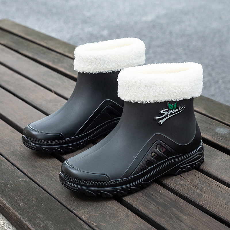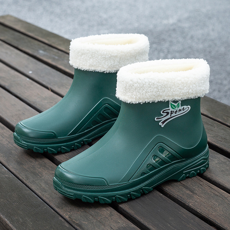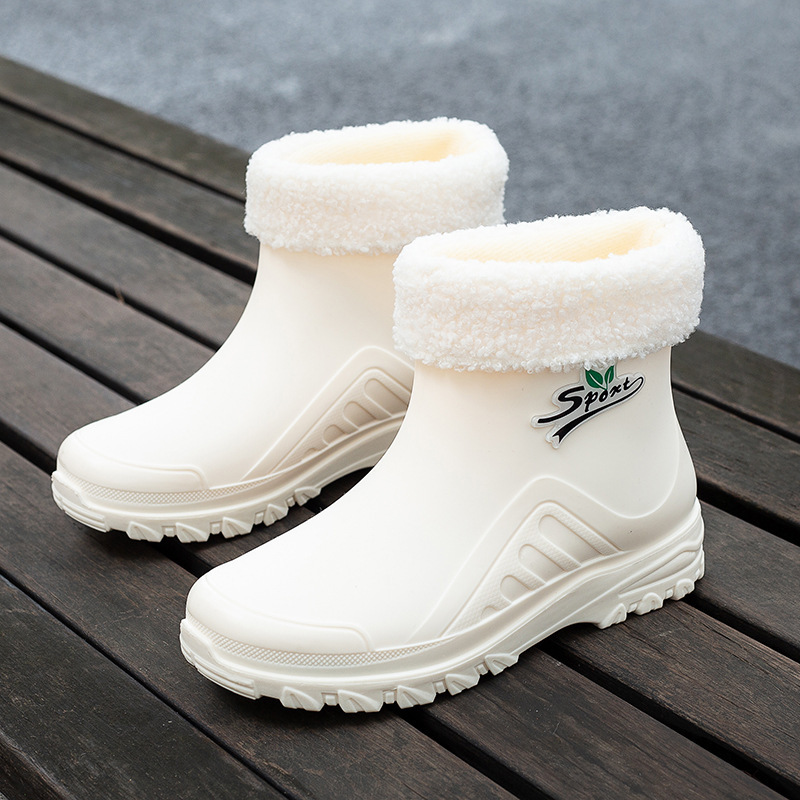 뉴 포시즌 올 매치 여성용 장화 겨울면 패딩 따뜻한 여성용 장화 주방 짧은 방수 비 고무 신발