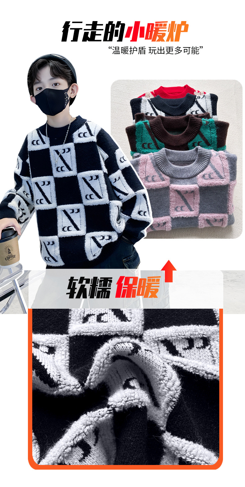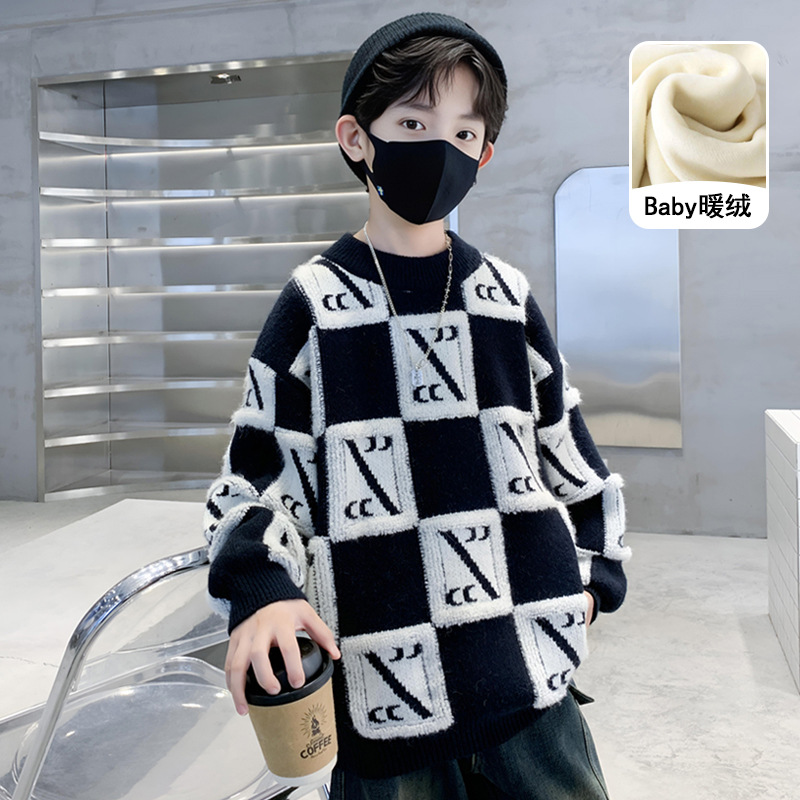 남아 겨울 두꺼운 한국 스타일 스웨터 남아 2023 새로운 어린이 스타일 따뜻한 베이스 셔츠 트렌디 쿨스토어 가기