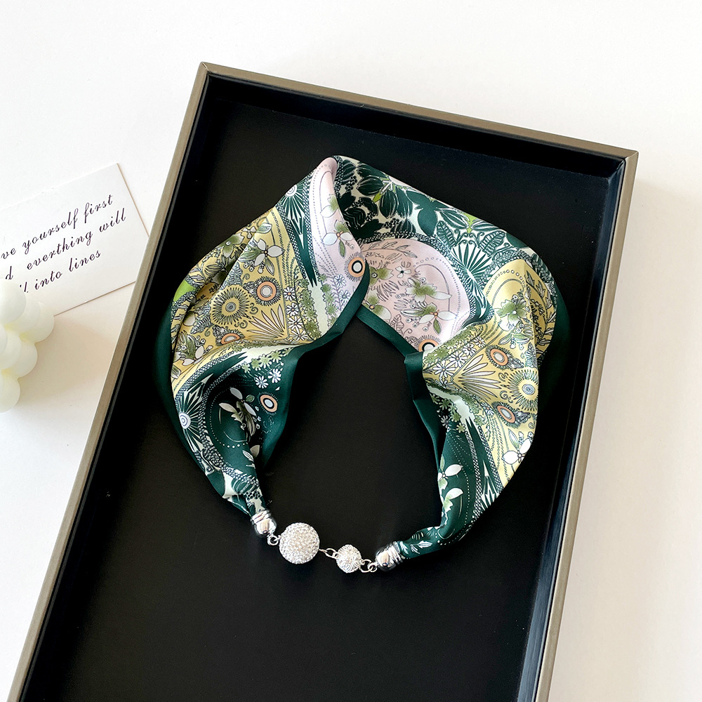 2025 신년 모델 자석 스카프 여성용 고급스러운 심플 스카프 패션 다용도 녹색 나비 스카프 목걸이스토어 가기