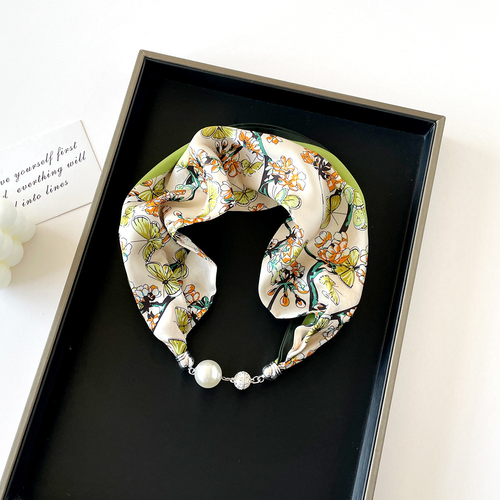 2025 신년 모델 자석 스카프 여성용 고급스러운 심플 스카프 패션 다용도 녹색 나비 스카프 목걸이