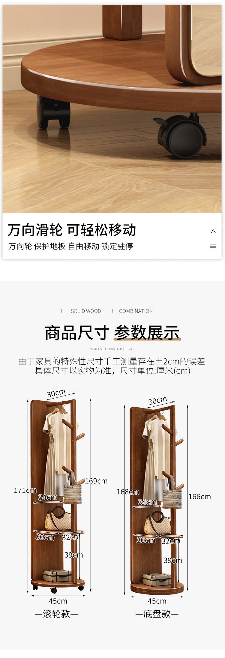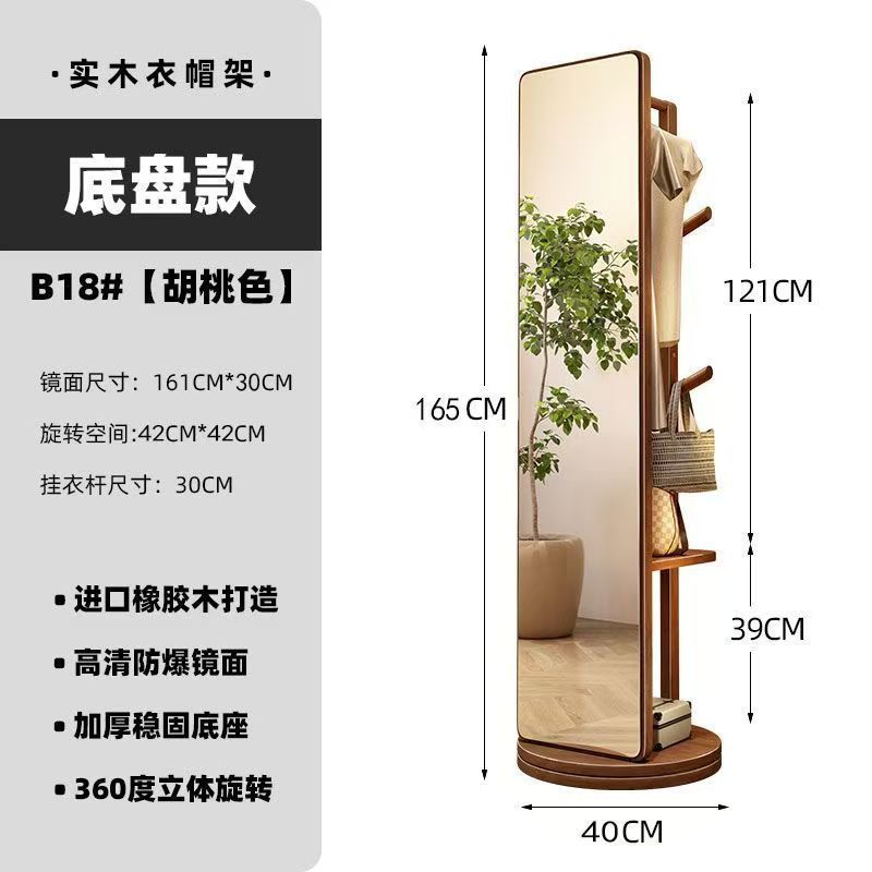 단단한 나무 드레싱 거울 전신 거울 가정용 회전식 행거 바닥 거울 수납 랙 통합 침실 피팅 거울