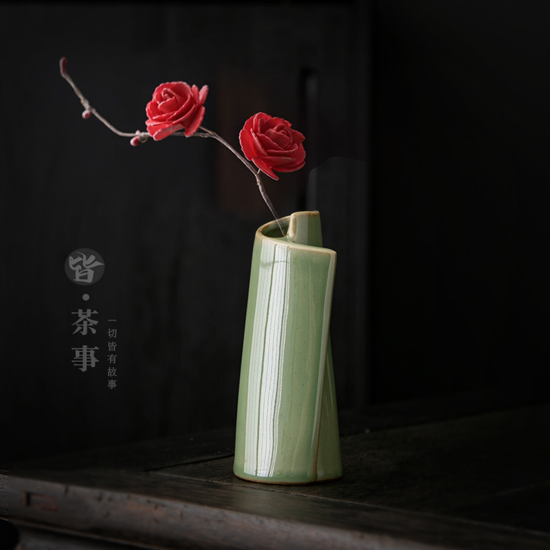 빈티지 세라믹 작은 꽃병 입구 데스크탑 말린 꽃 꽃 꽃꽂이 테이블 청자 수경 작은 꽃병 식탁 꽃병