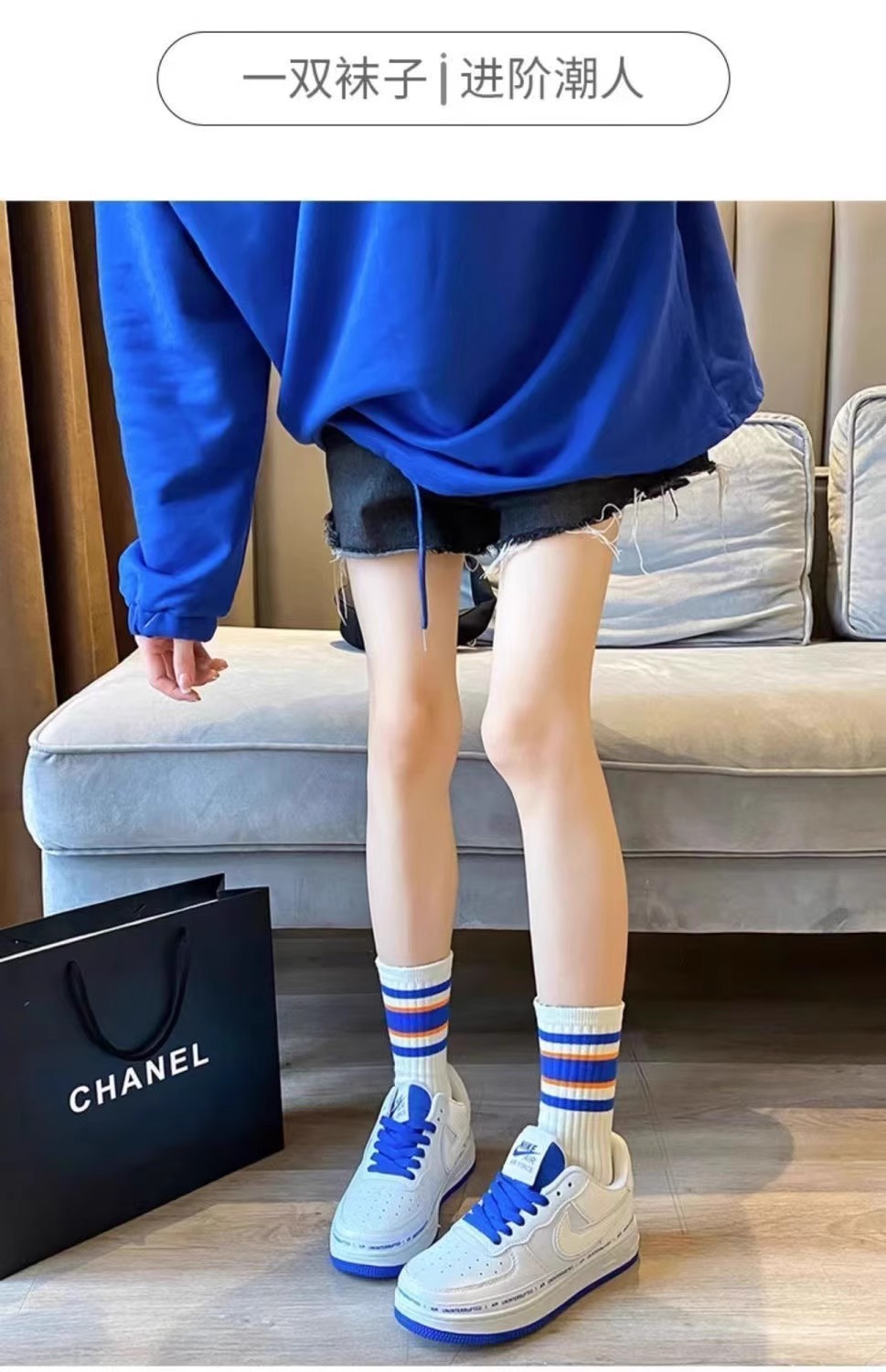 가을과 겨울 중간 길이 스타킹 어린이 인 타이드 스트라이프 스포츠 중간 길이 스타킹 스트리트 스타일 작은 흰색 신발 상어 바지스토어 가기