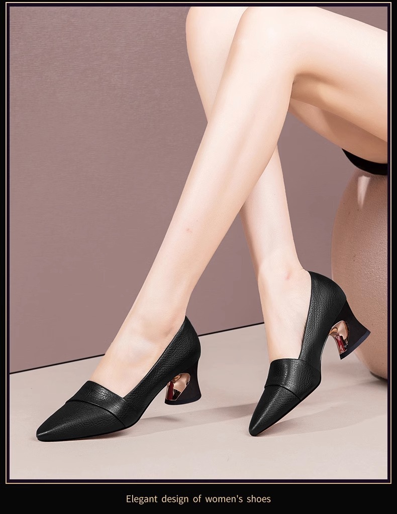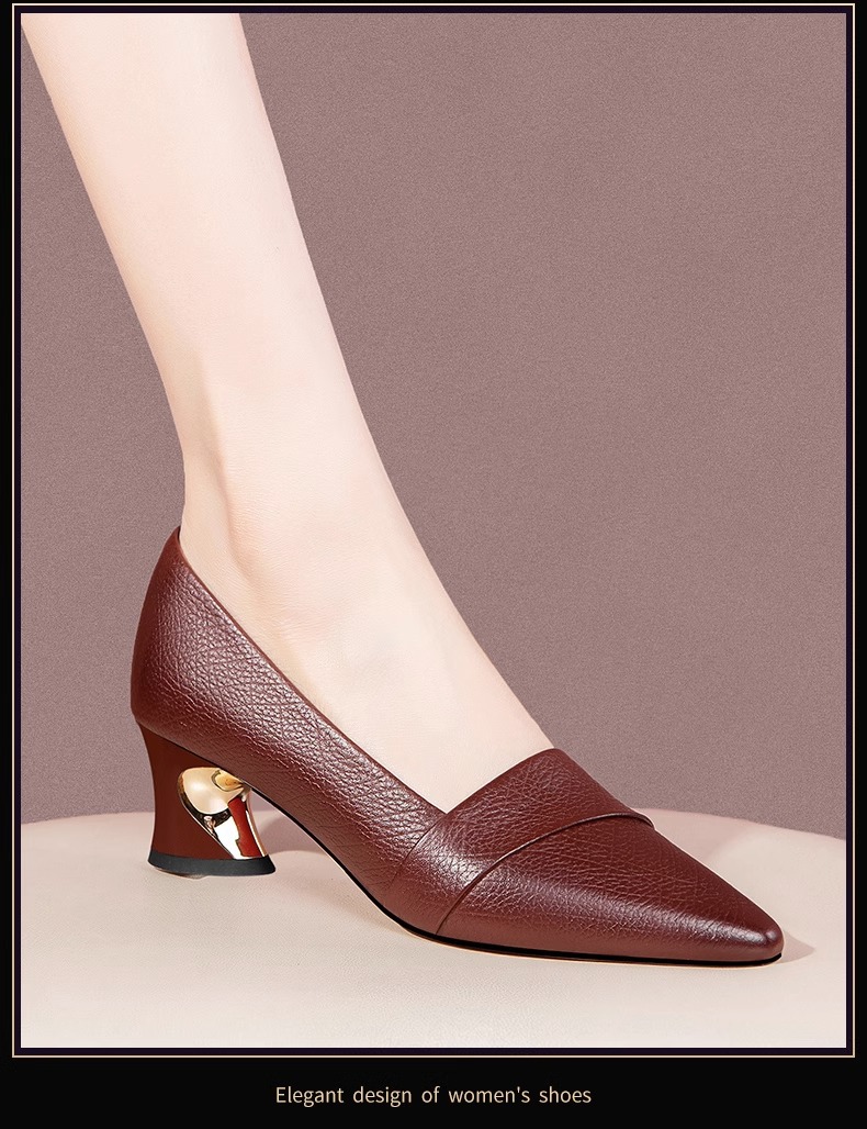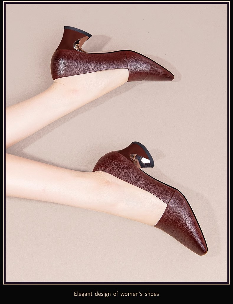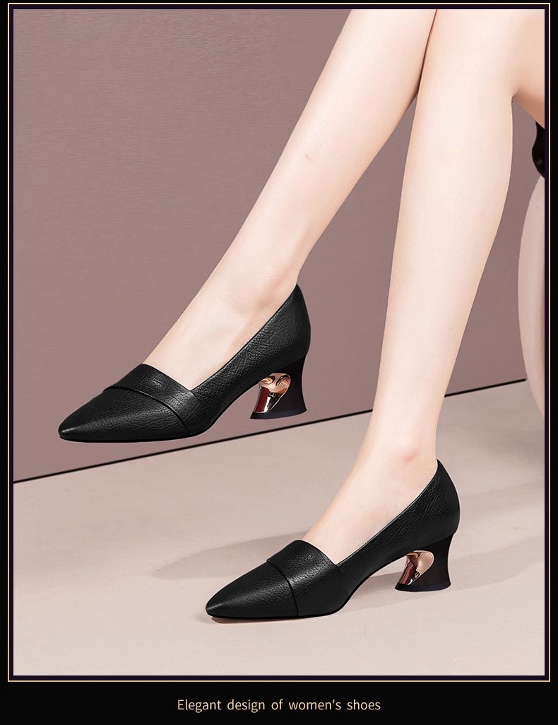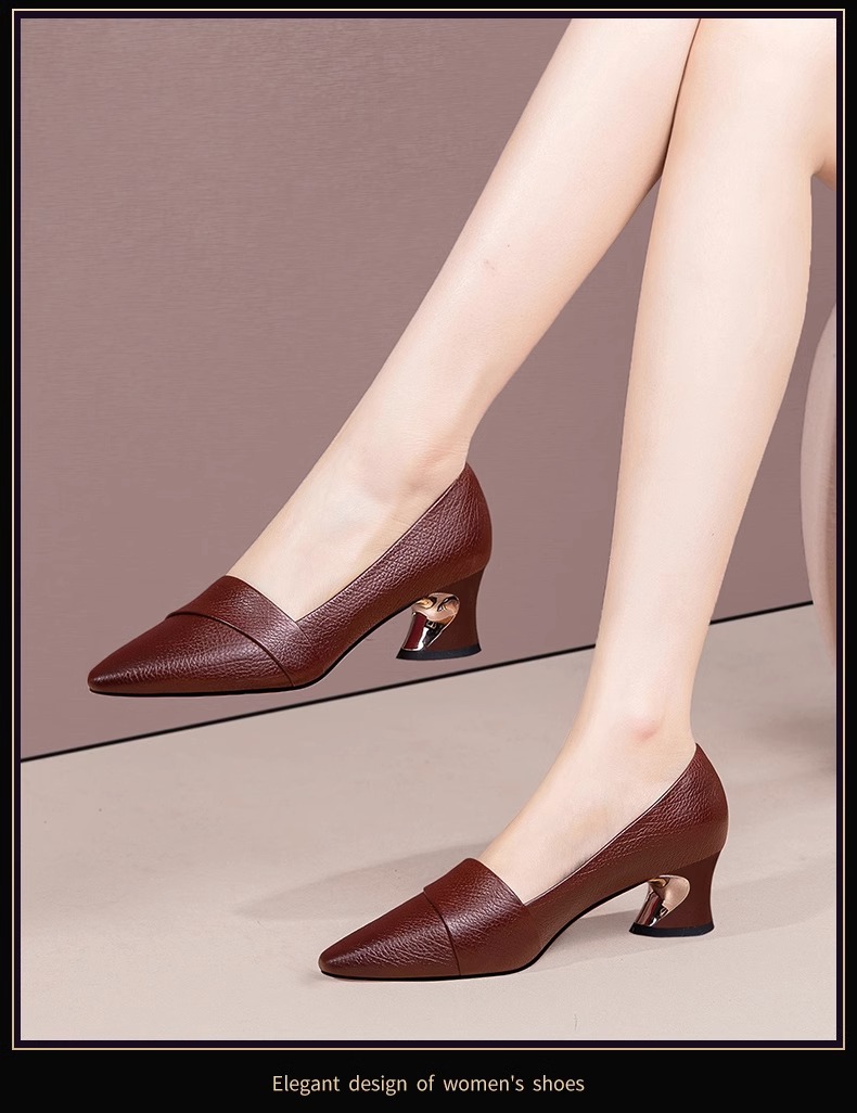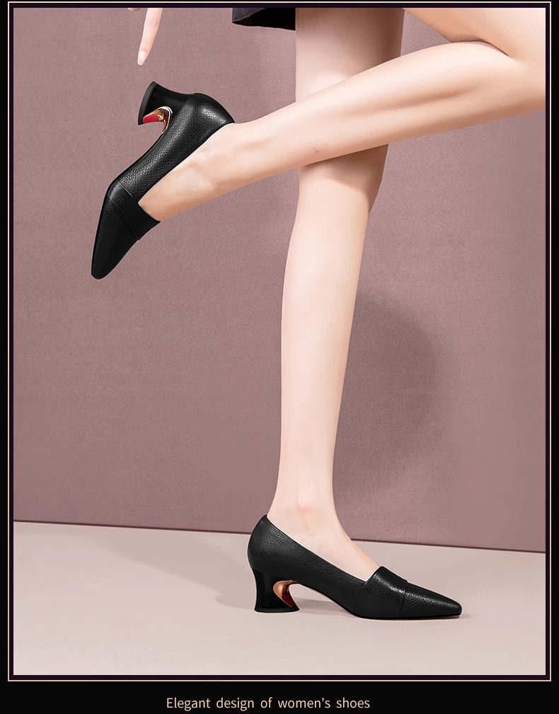 빈티지 뾰족한 얕은 중간 굽 싱글 레이어 신발 여성용 두꺼운 굽 작은 가죽 신발 2023 봄과 가을 새로운 패션 플러스 사이즈 여성 신발스토어 가기