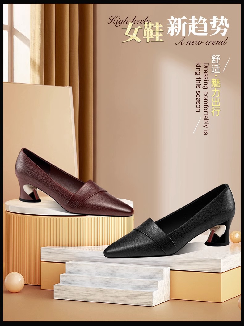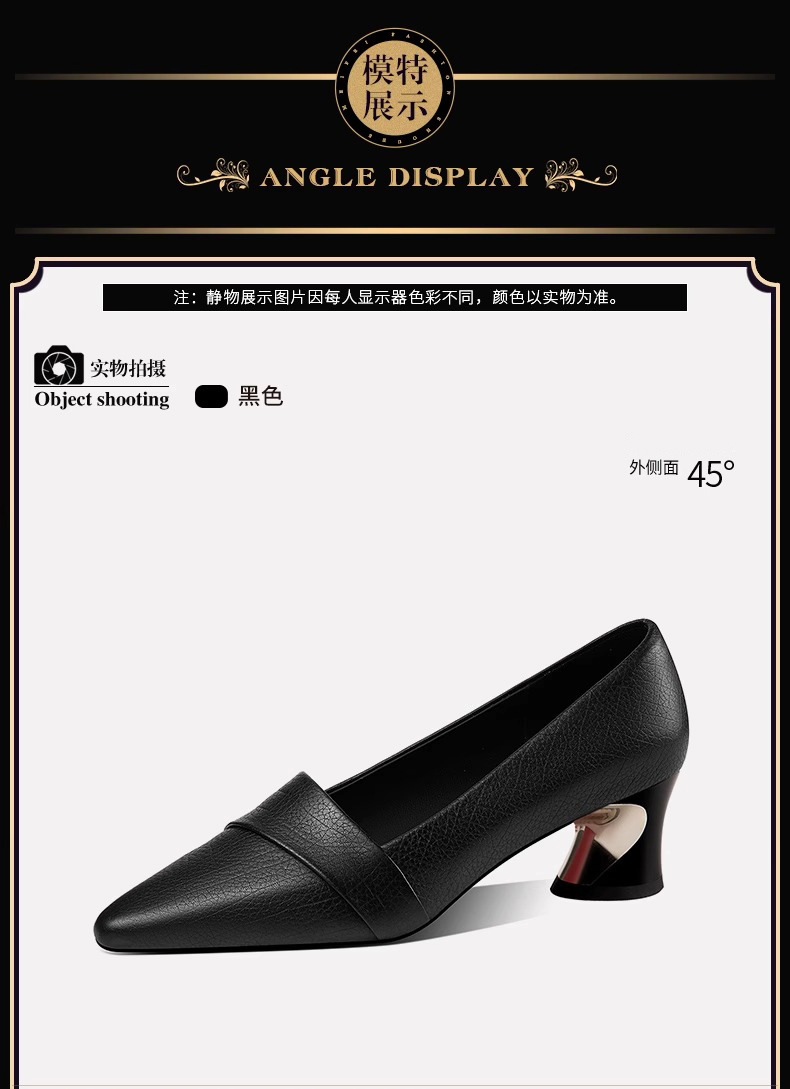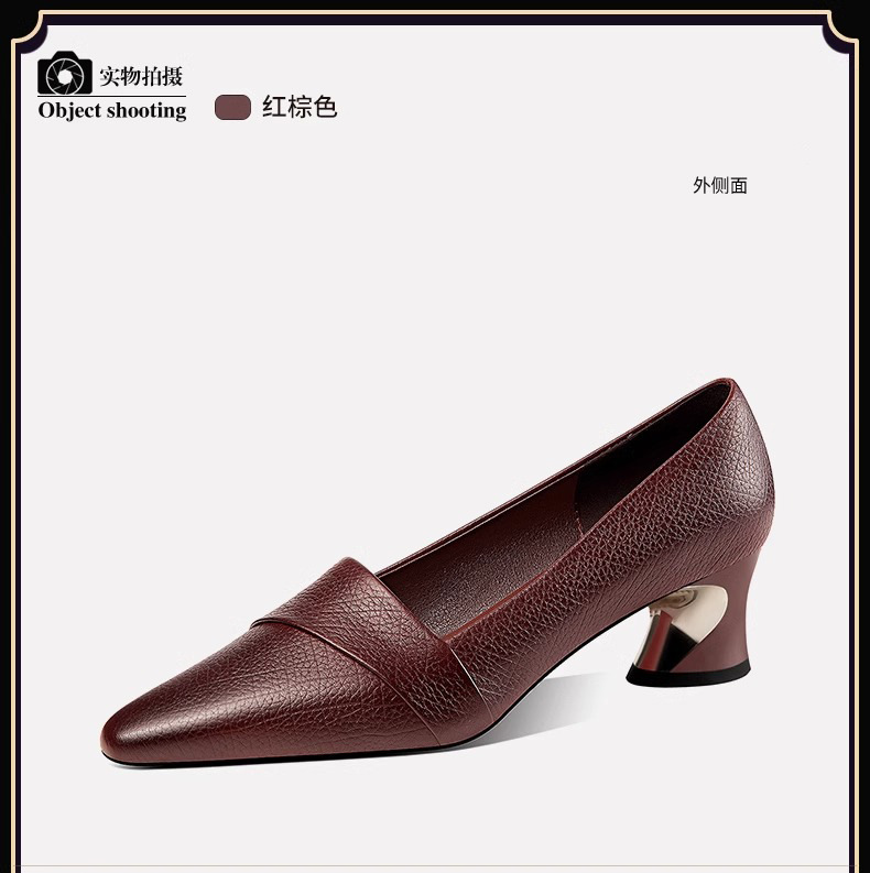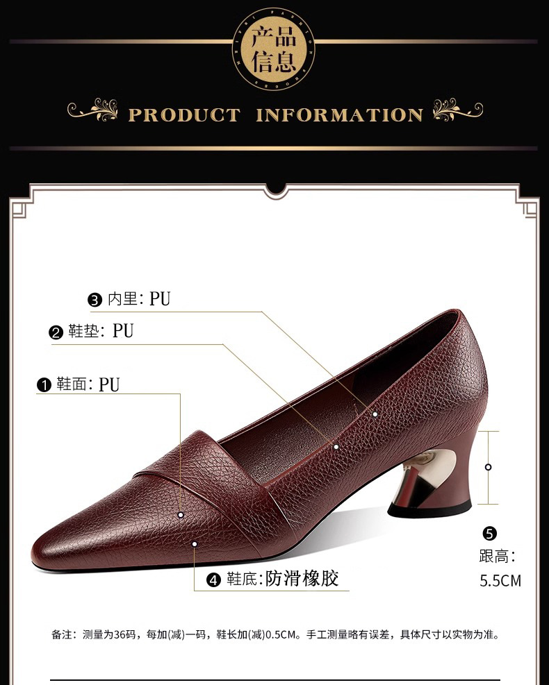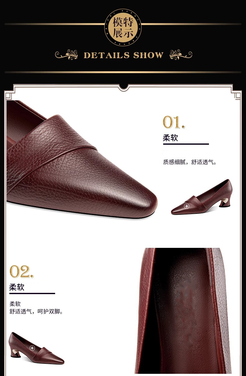 빈티지 뾰족한 얕은 중간 굽 싱글 레이어 신발 여성용 두꺼운 굽 작은 가죽 신발 2023 봄과 가을 새로운 패션 플러스 사이즈 여성 신발스토어 가기