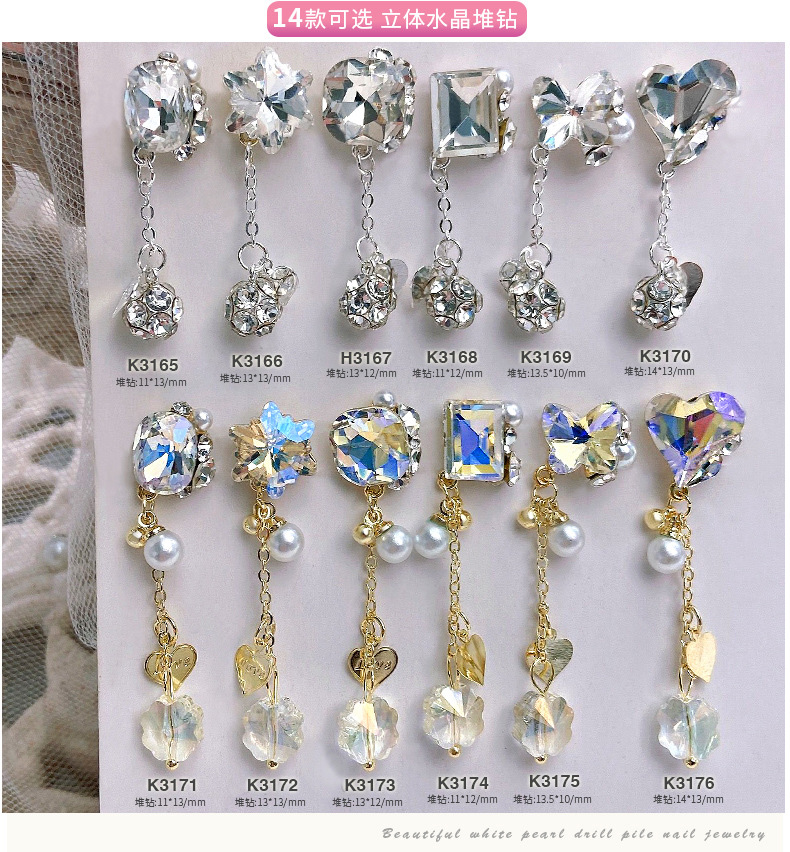 순 연예인 폭발적인 네일 아트 크리스탈 파일 다이아몬드 펜던트 쥬얼리 슈퍼 플래시 다이아몬드 볼 술 비뚤어진 심장 지방 스퀘어 네일 체인 쥬얼리