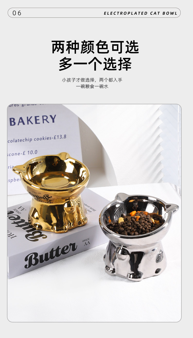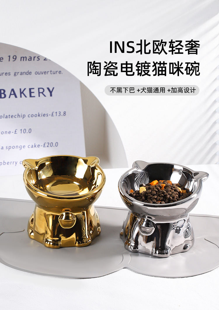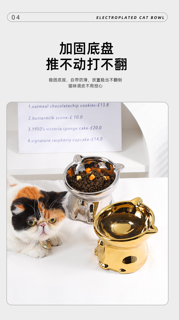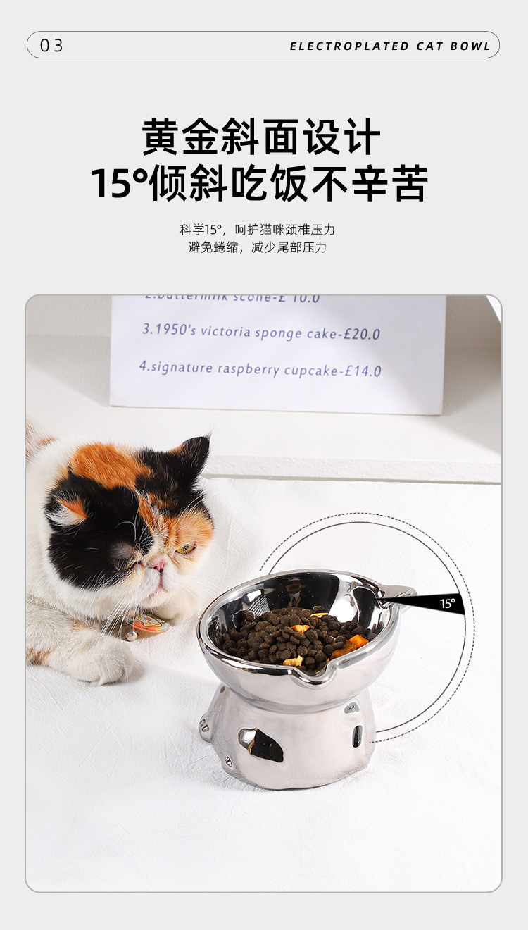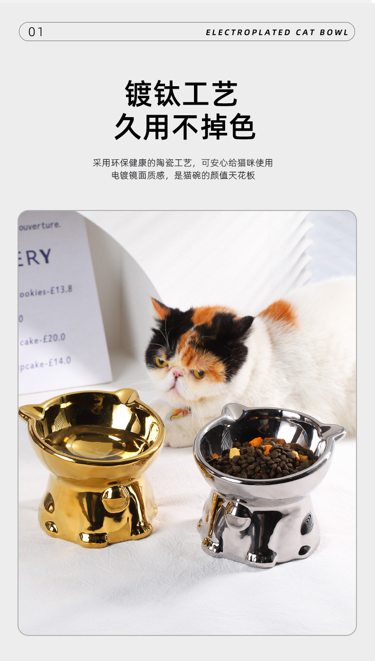 세라믹 애완 동물 고양이 그릇 음식 분지 물 그릇 고양이 노크 방지 고양이 음식 식수 밥 그릇 높은 발 목 보호 비스듬한 고양이 음식 분지