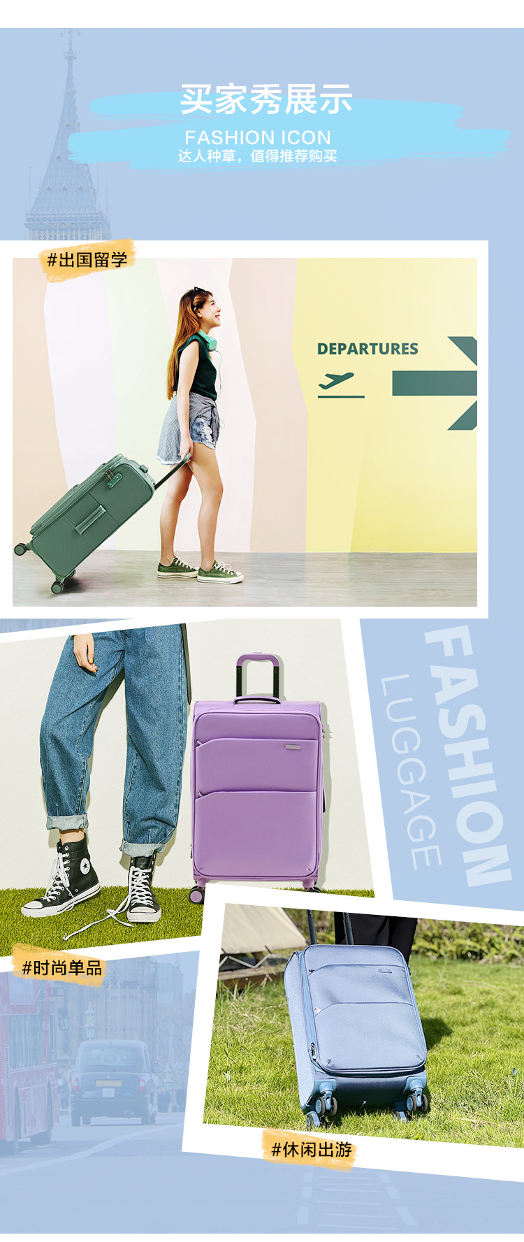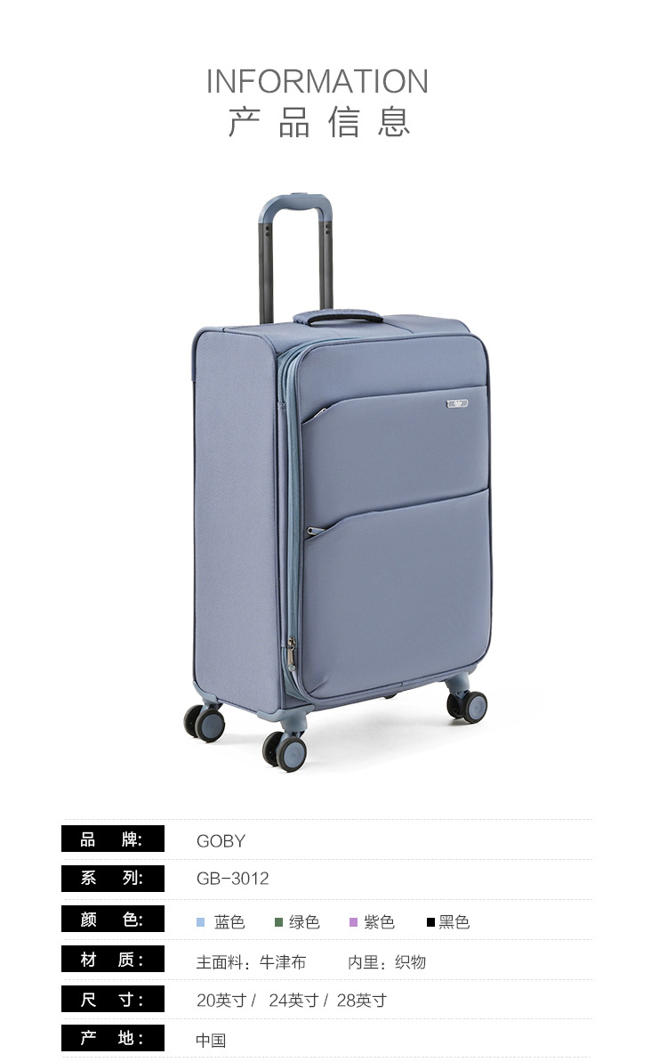 영국 GOBY 초경량 옥스포드 천 탑승 가방 여성용 20inch 트롤리 가방 여행 가방 비즈니스 비밀번호 상자스토어 가기