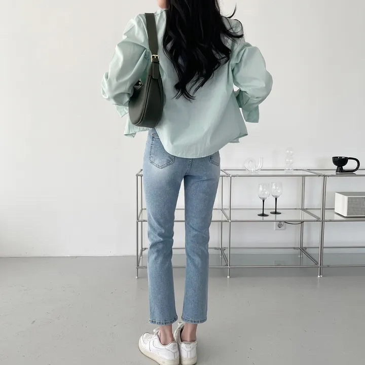 한국 세련된 기본 흰색 셔츠 여성 봄, 가을 디자인 틈새 루즈 탑 셔츠 9 색