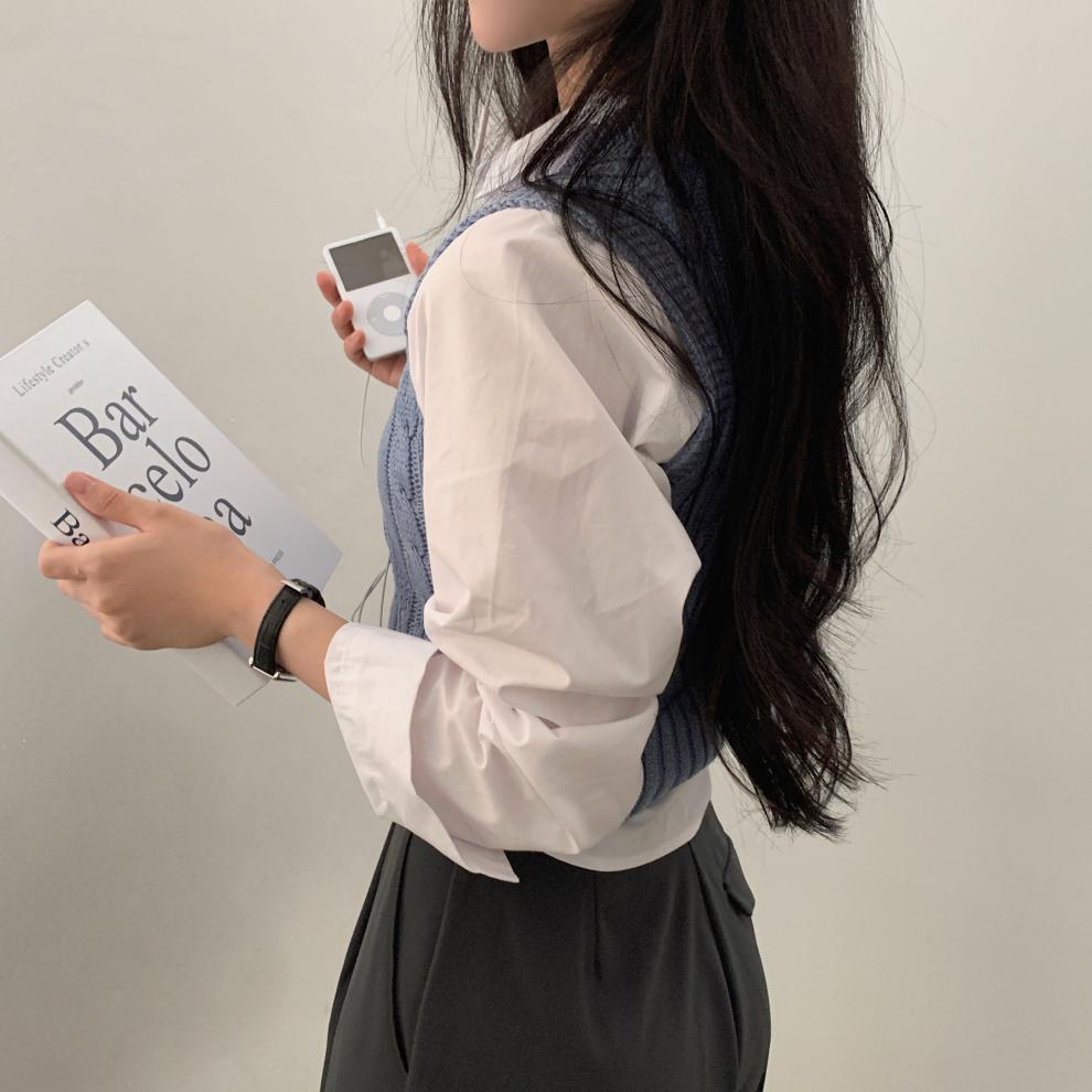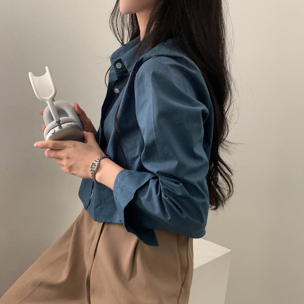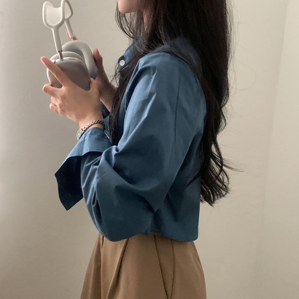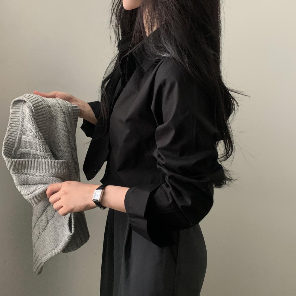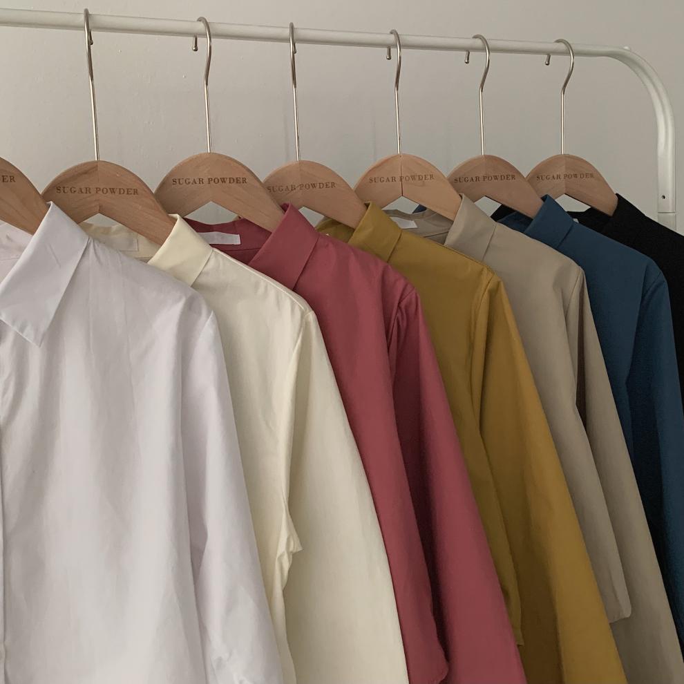 한국 세련된 기본 흰색 셔츠 여성 봄, 가을 디자인 틈새 루즈 탑 셔츠 9 색스토어 가기