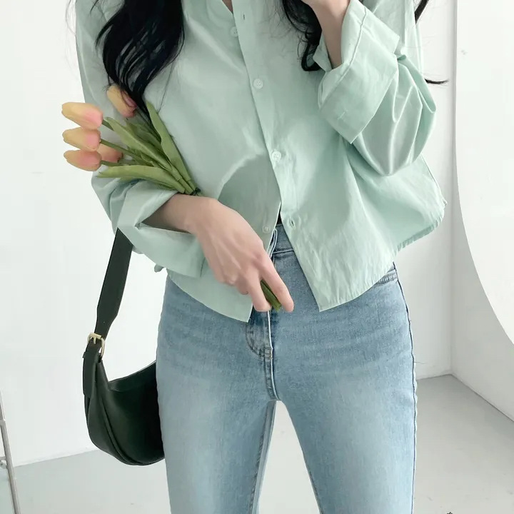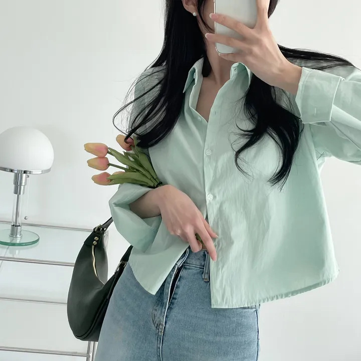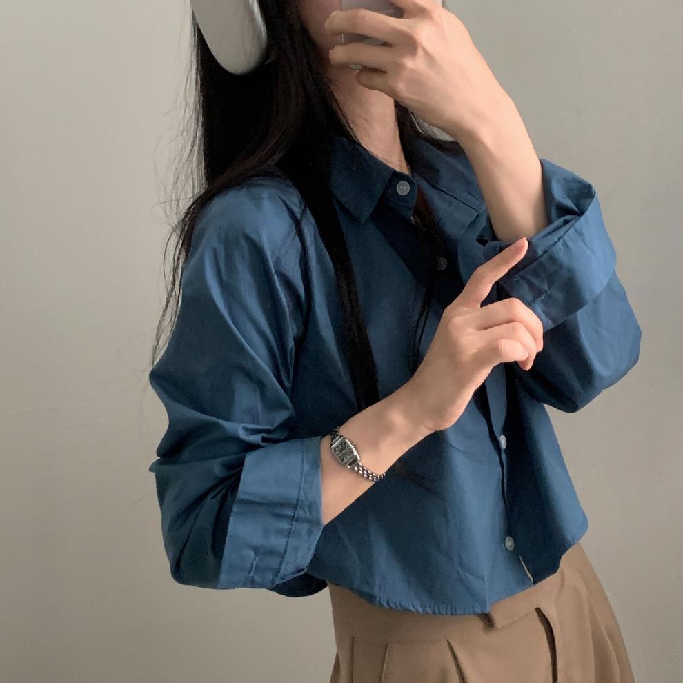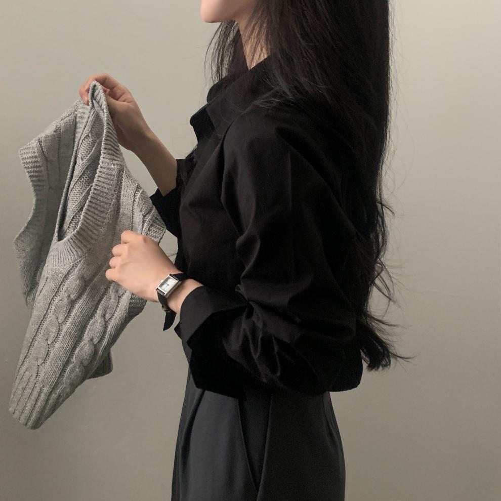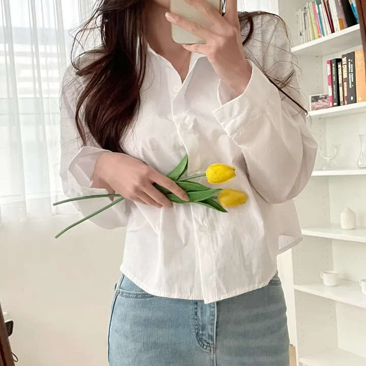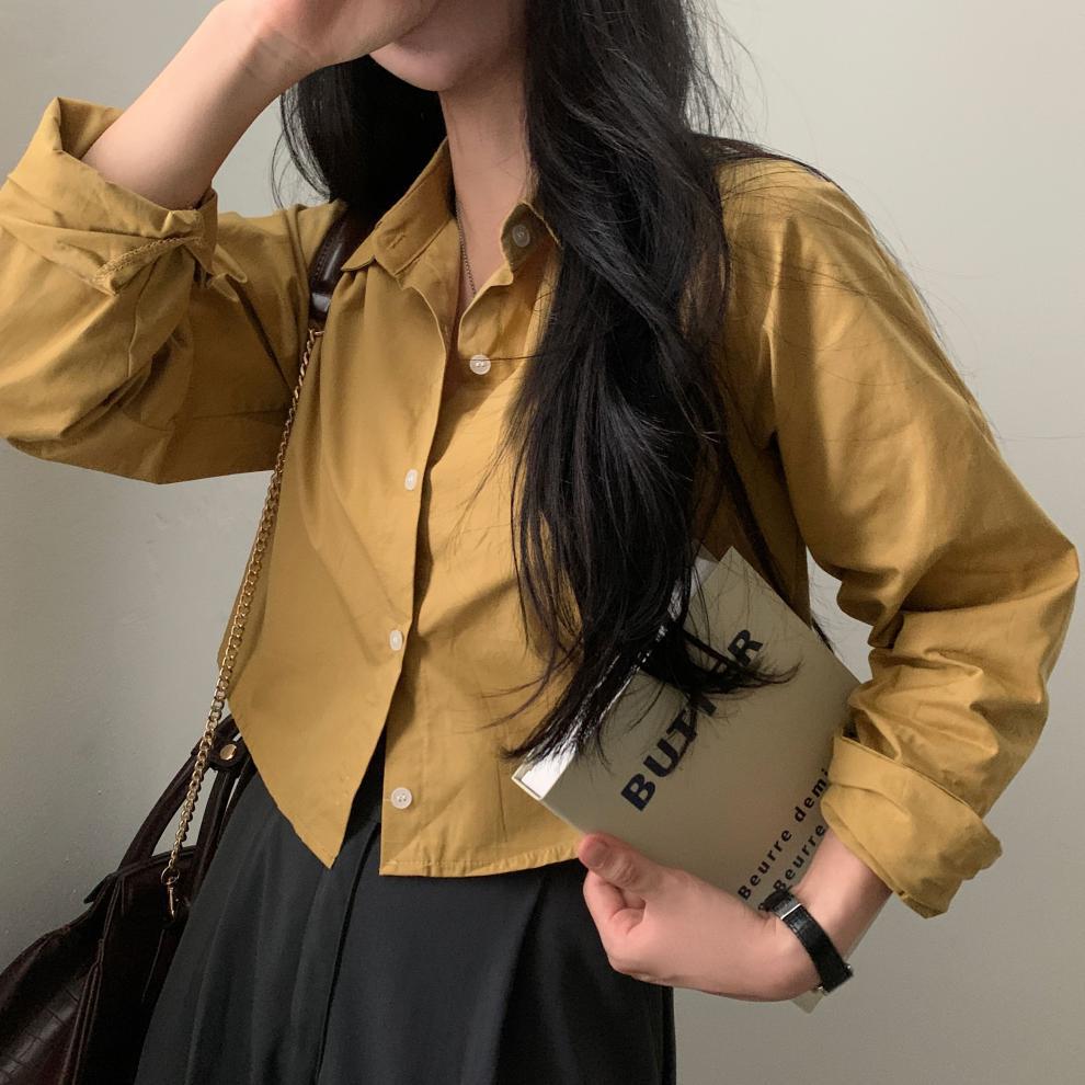 한국 세련된 기본 흰색 셔츠 여성 봄, 가을 디자인 틈새 루즈 탑 셔츠 9 색스토어 가기