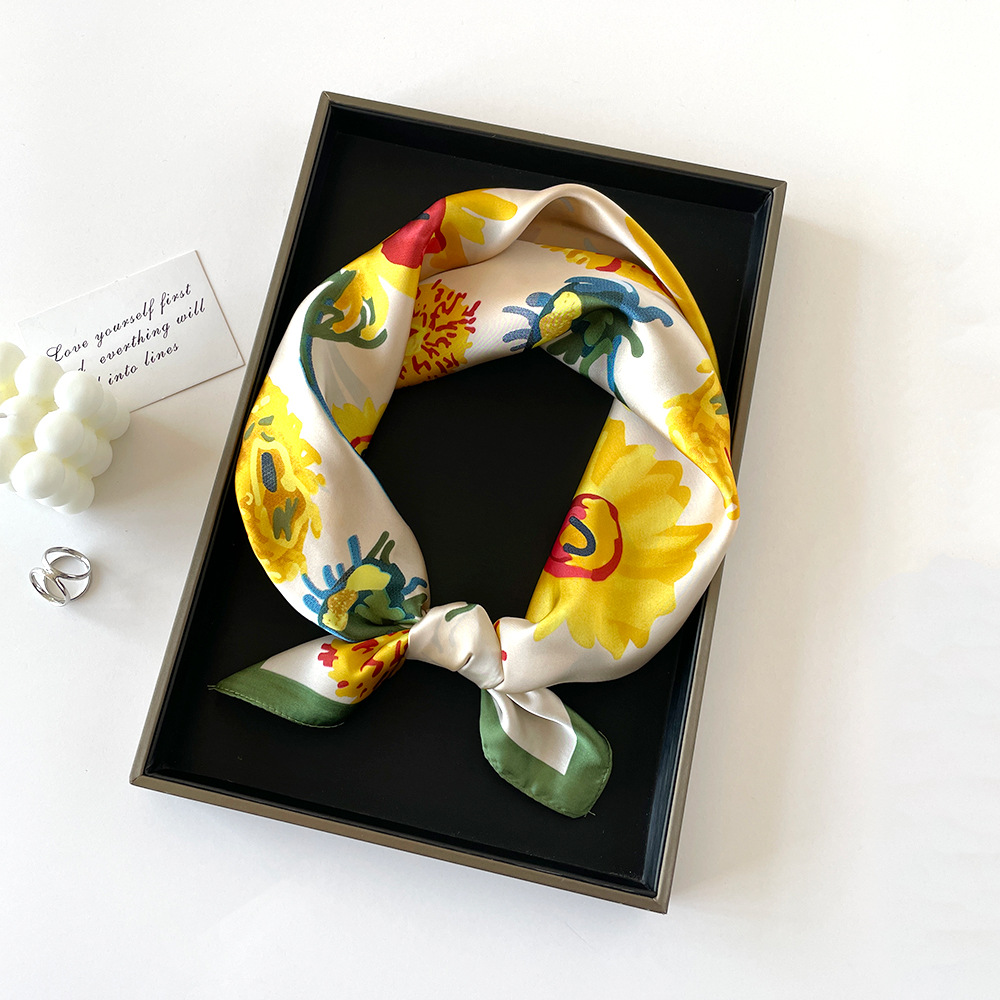 2025 봄 새로운 작은 실크 스카프 모방 실크 스퀘어 여성 패션 조커 스카프 높은 감각 작은 스카프 도매
