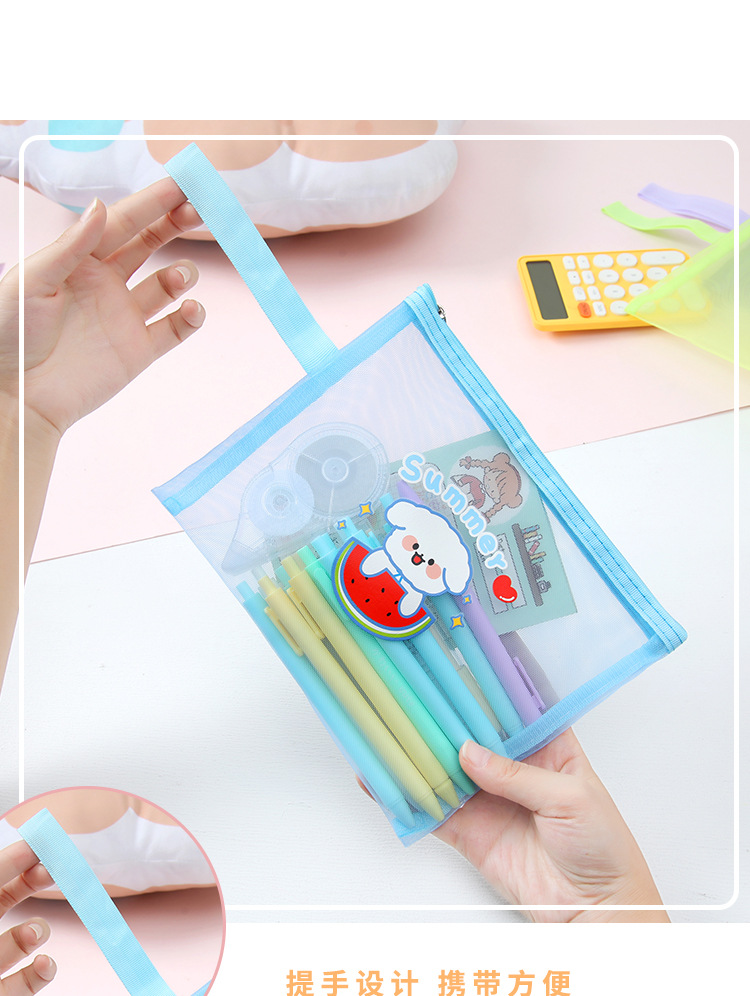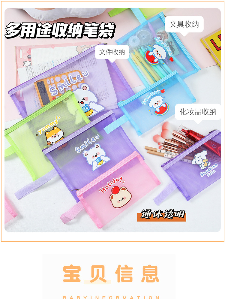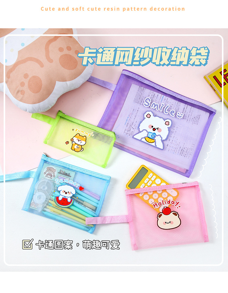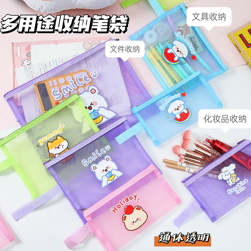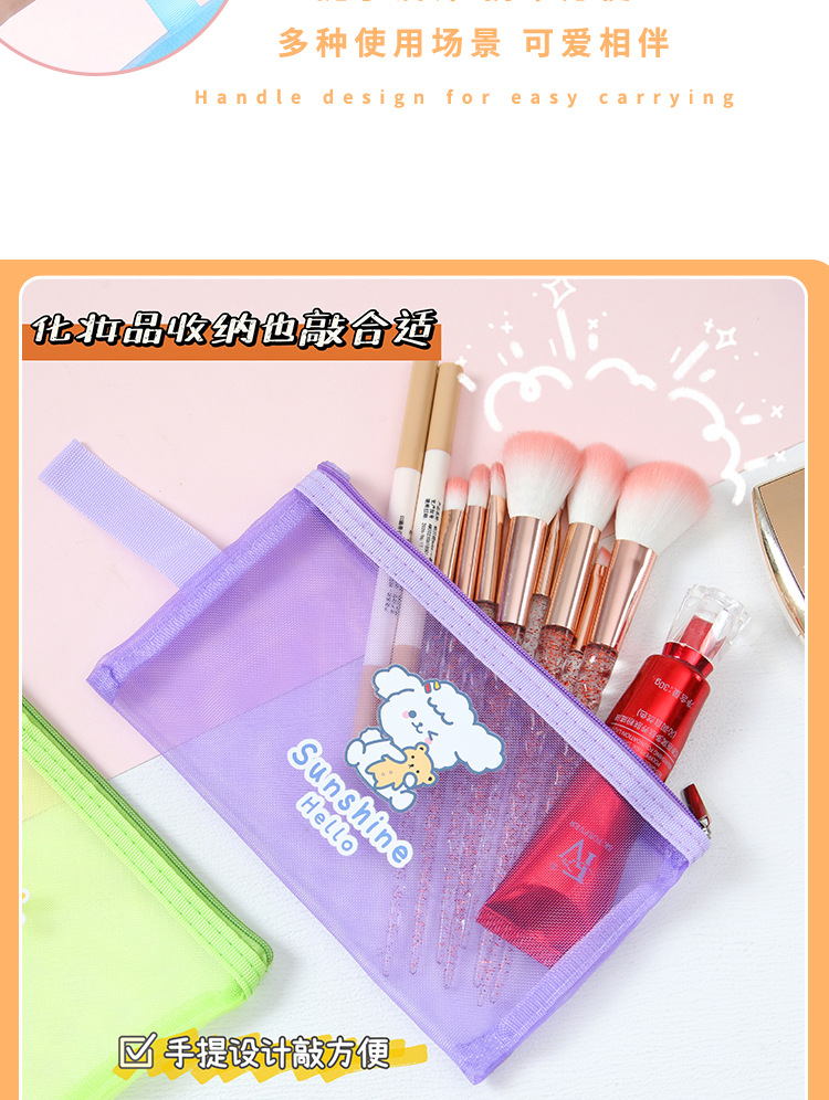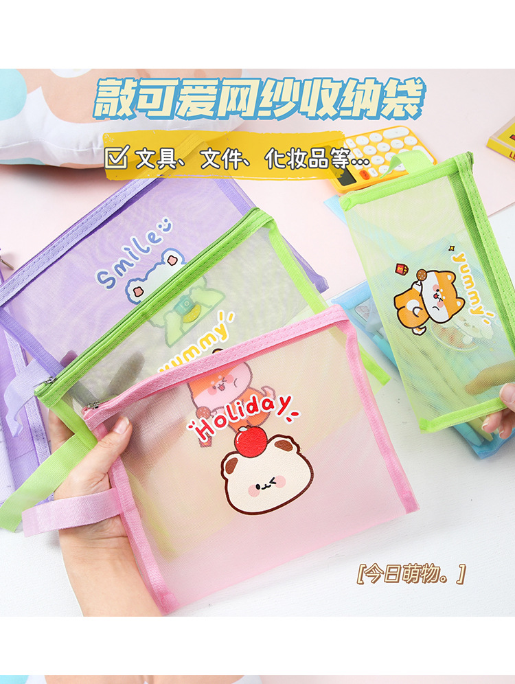 만화 캐릭터 통기성 휴대용 메쉬 수납 가방 학생용 문구 가방 귀여운 인스 스타일 대용량 나일론 수납 가방