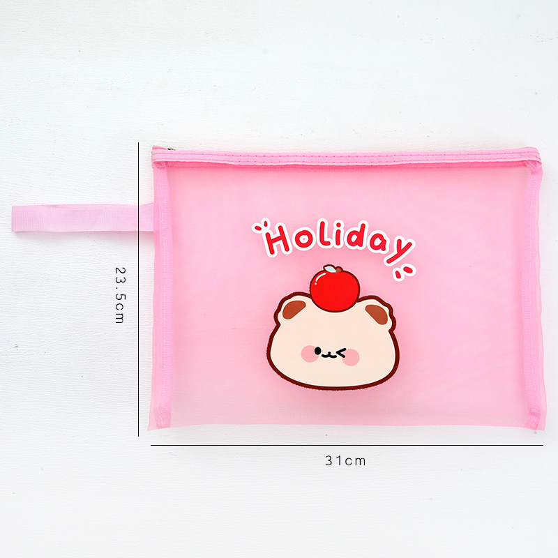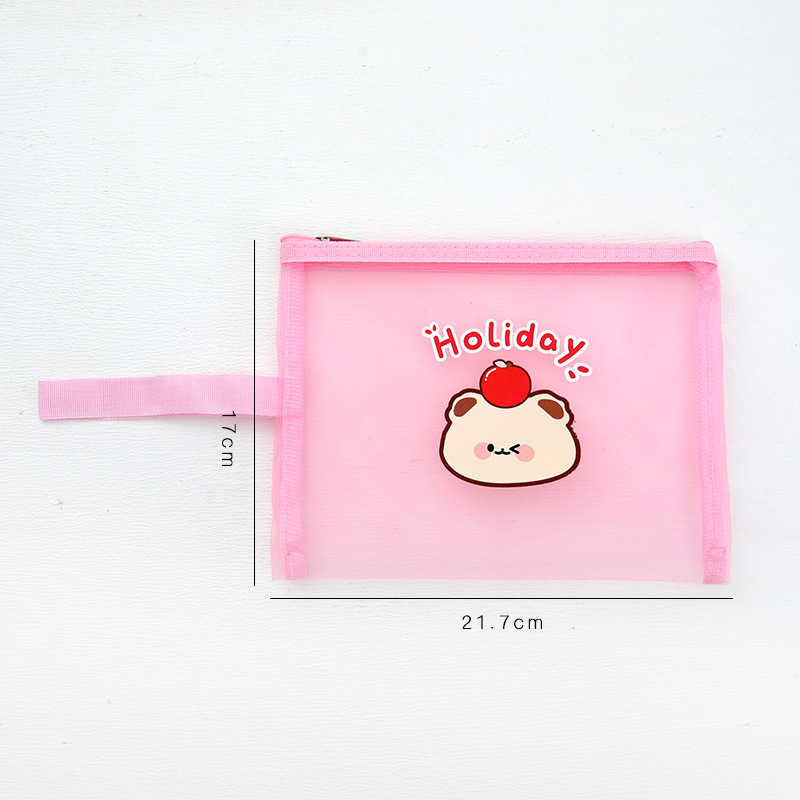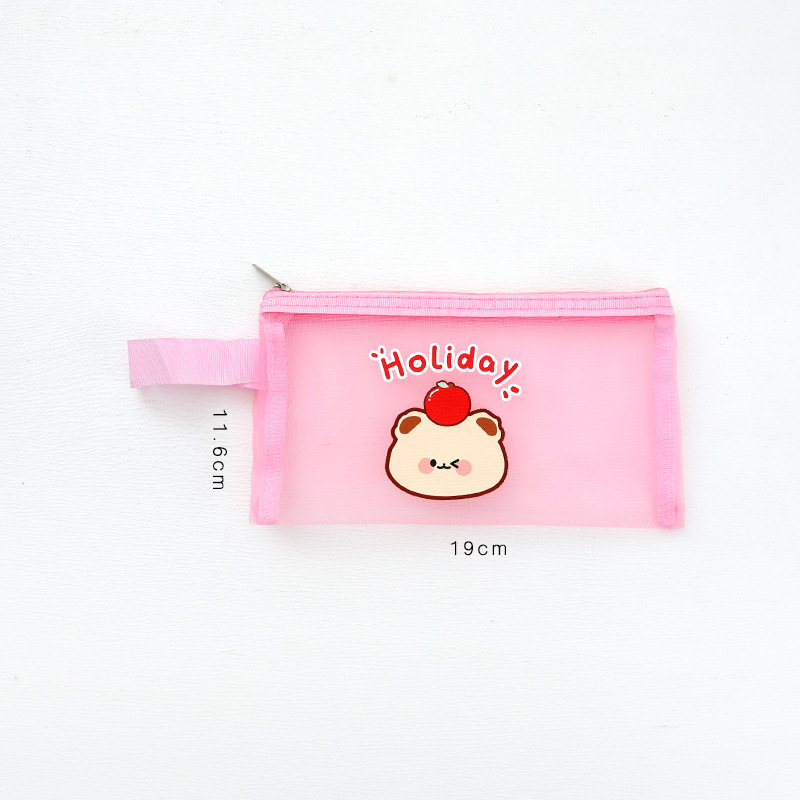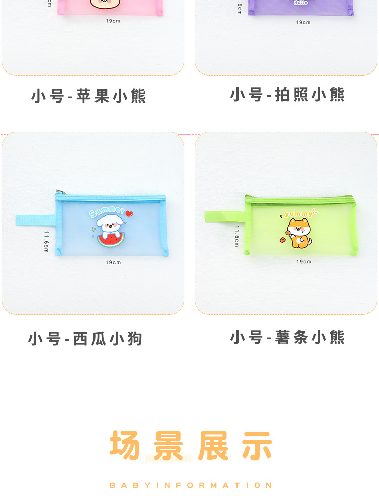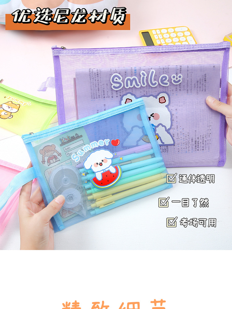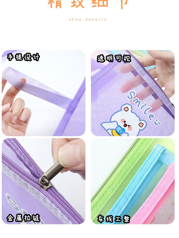 만화 캐릭터 통기성 휴대용 메쉬 수납 가방 학생용 문구 가방 귀여운 인스 스타일 대용량 나일론 수납 가방