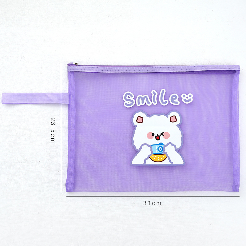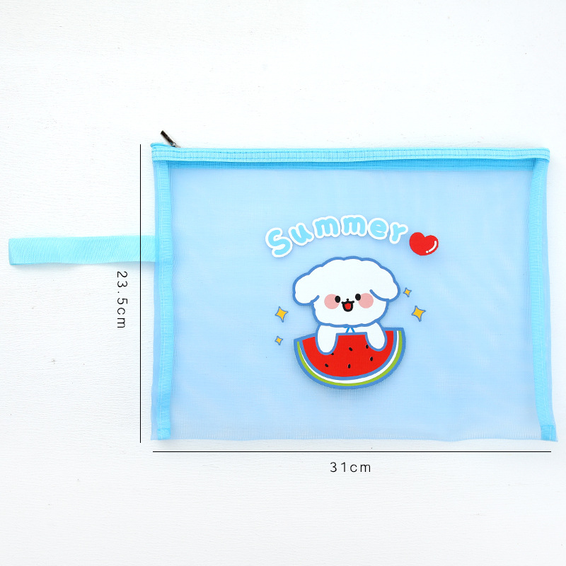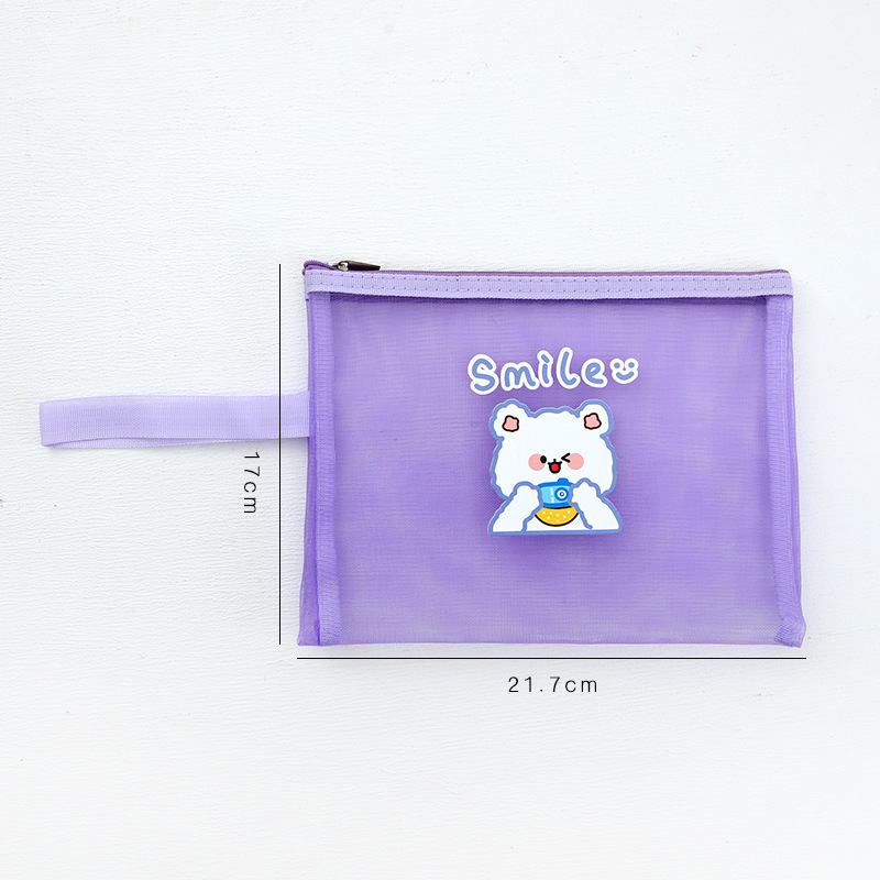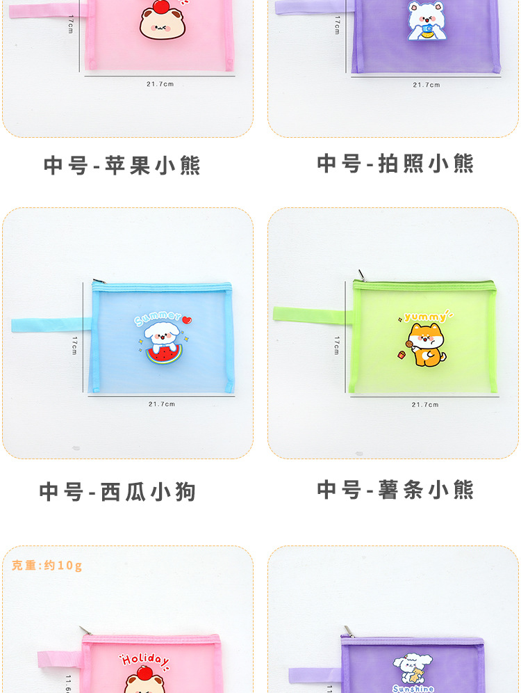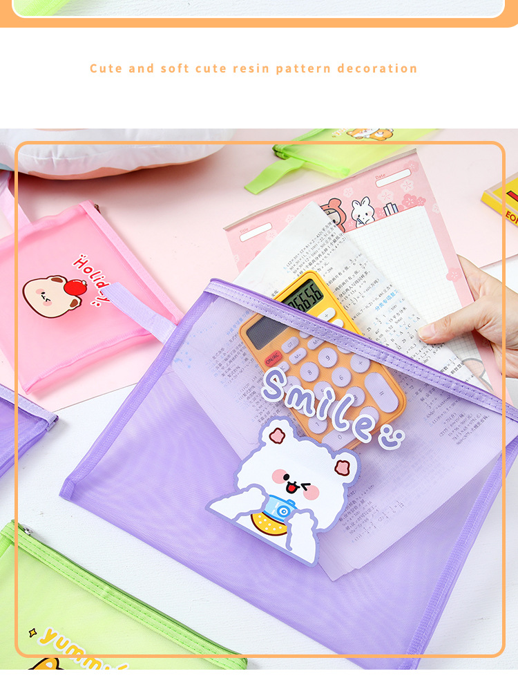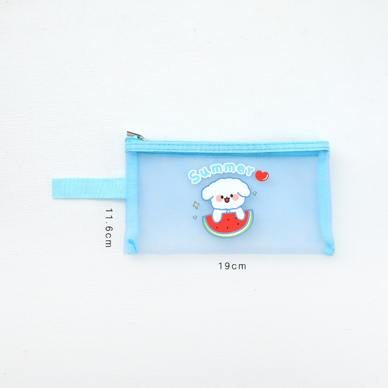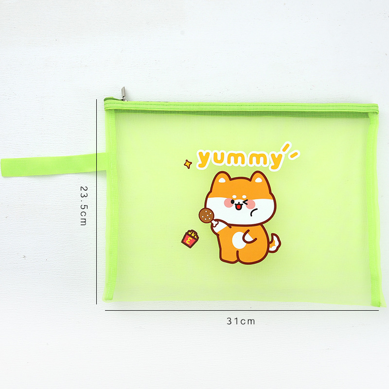 만화 캐릭터 통기성 휴대용 메쉬 수납 가방 학생용 문구 가방 귀여운 인스 스타일 대용량 나일론 수납 가방