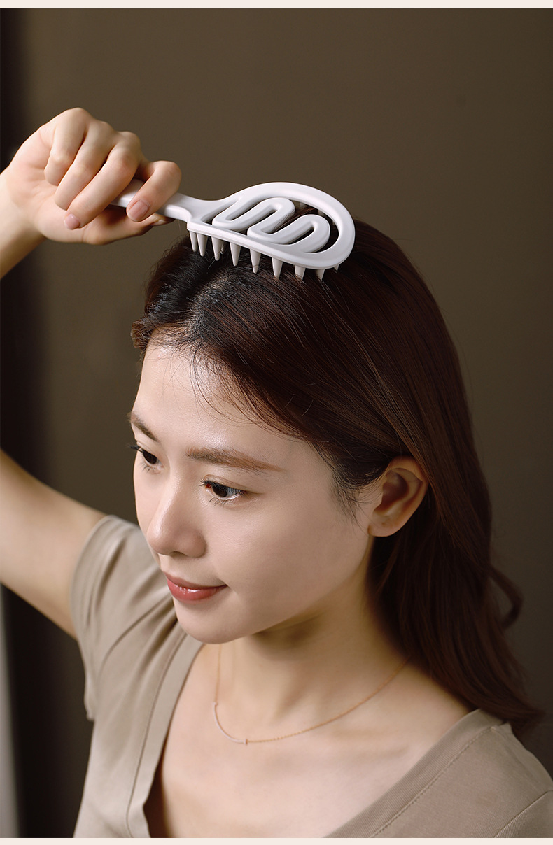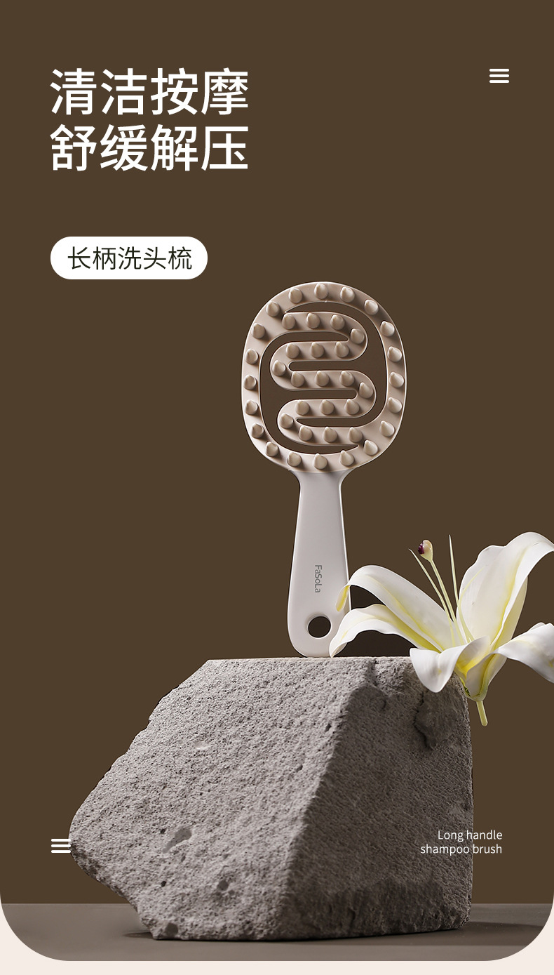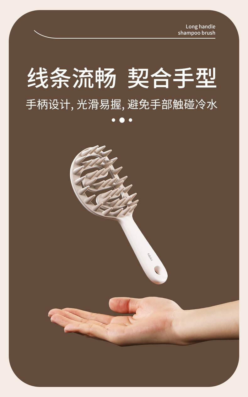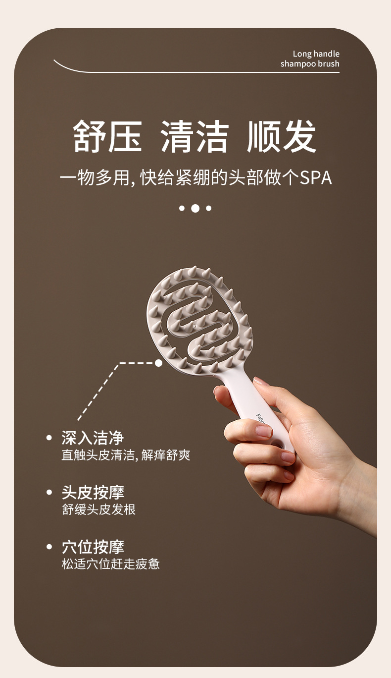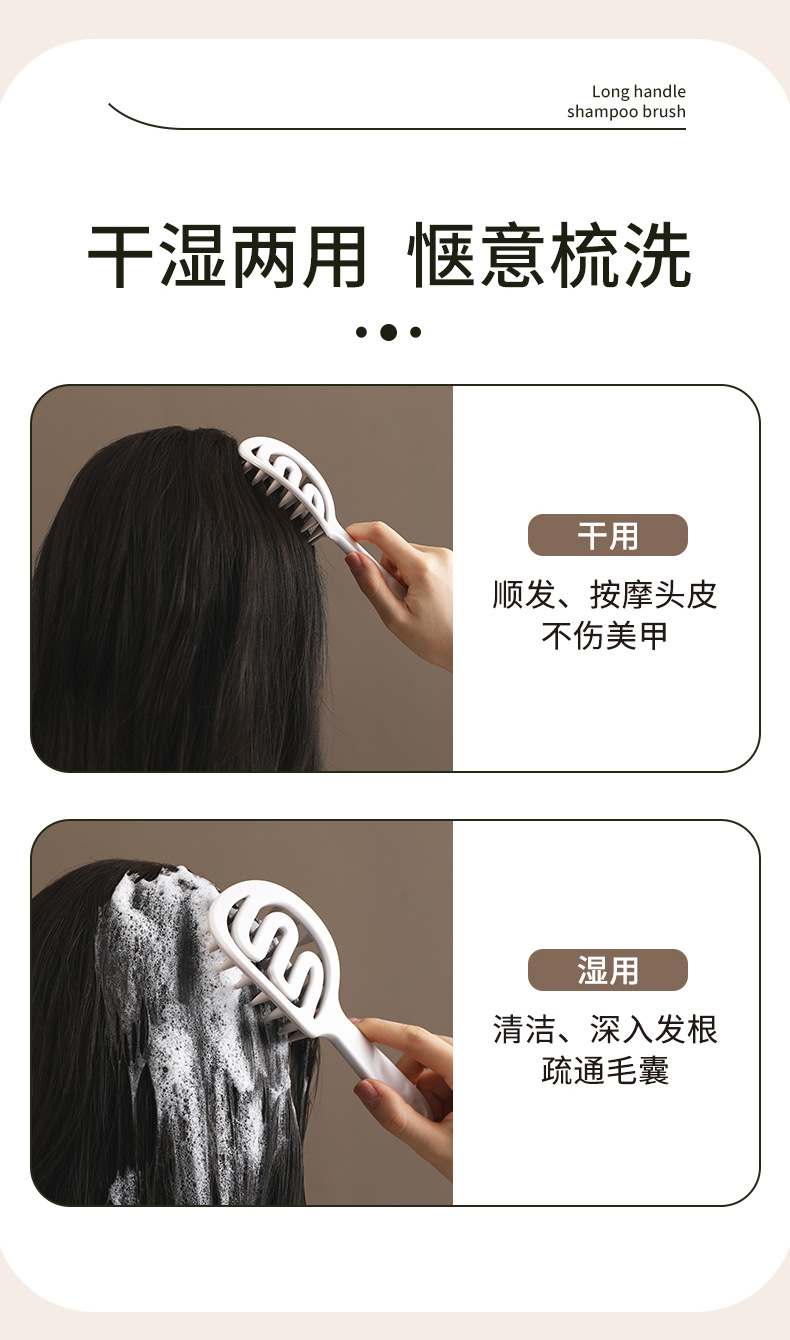 FaSoLa 가정용 청소 샴푸 브러시 습식 및 건식 이중 사용 긴 손잡이 샴푸 욕실 미용 및 두피 마사지 유물