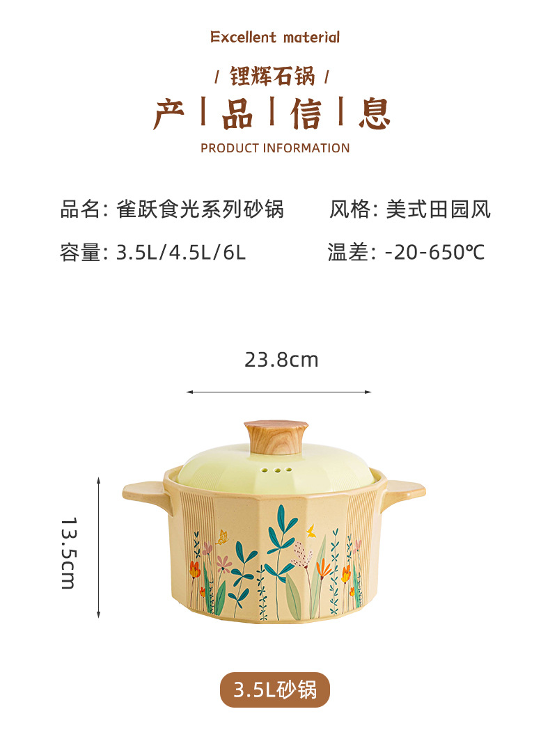 크리 에이 티브 미국 목회 캐서롤 가정용 Spodumene 신선한 스튜 냄비 고온 저항 오픈 불 수프 냄비 선물 상자스토어 가기