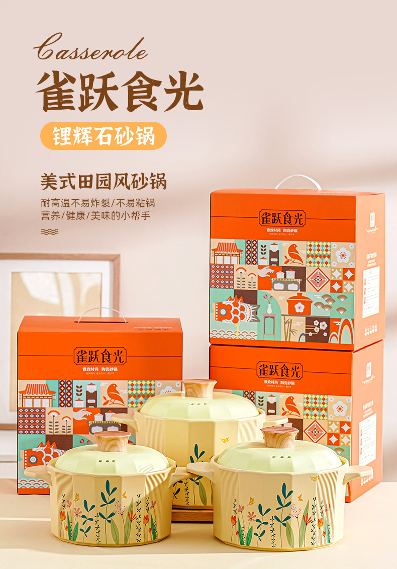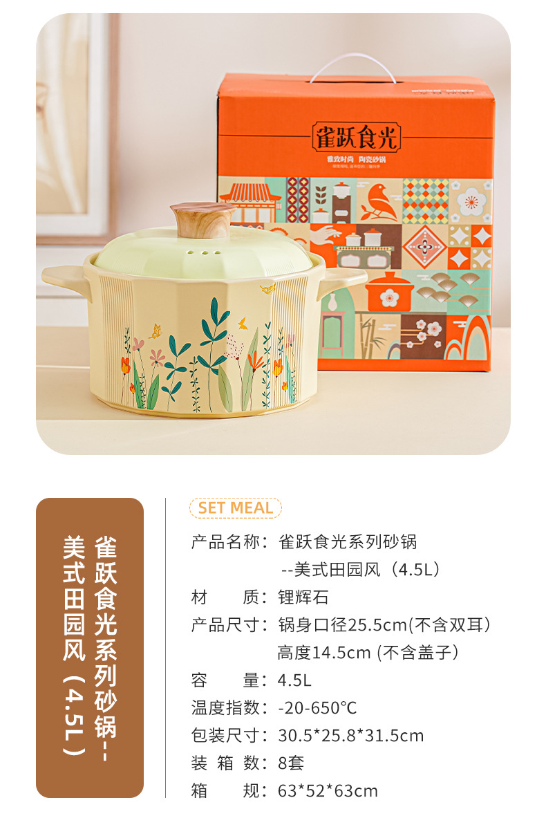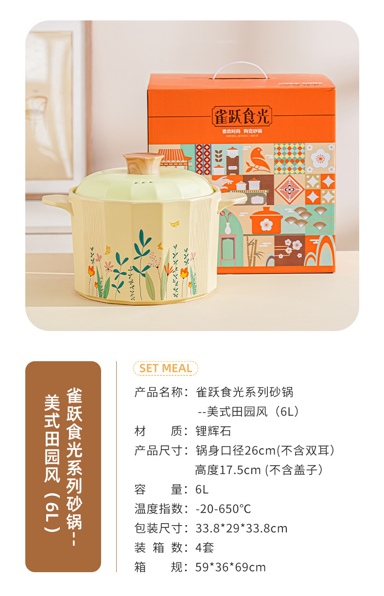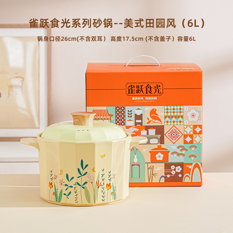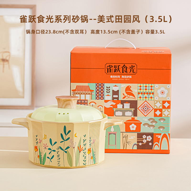 크리 에이 티브 미국 목회 캐서롤 가정용 Spodumene 신선한 스튜 냄비 고온 저항 오픈 불 수프 냄비 선물 상자