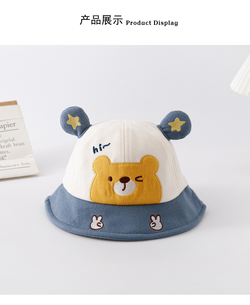 도매 가을 새로운 남녀 아동 모자 한국 선 스크린 분지 모자 자수 곰 태양 모자 아기 여행 모자 2138