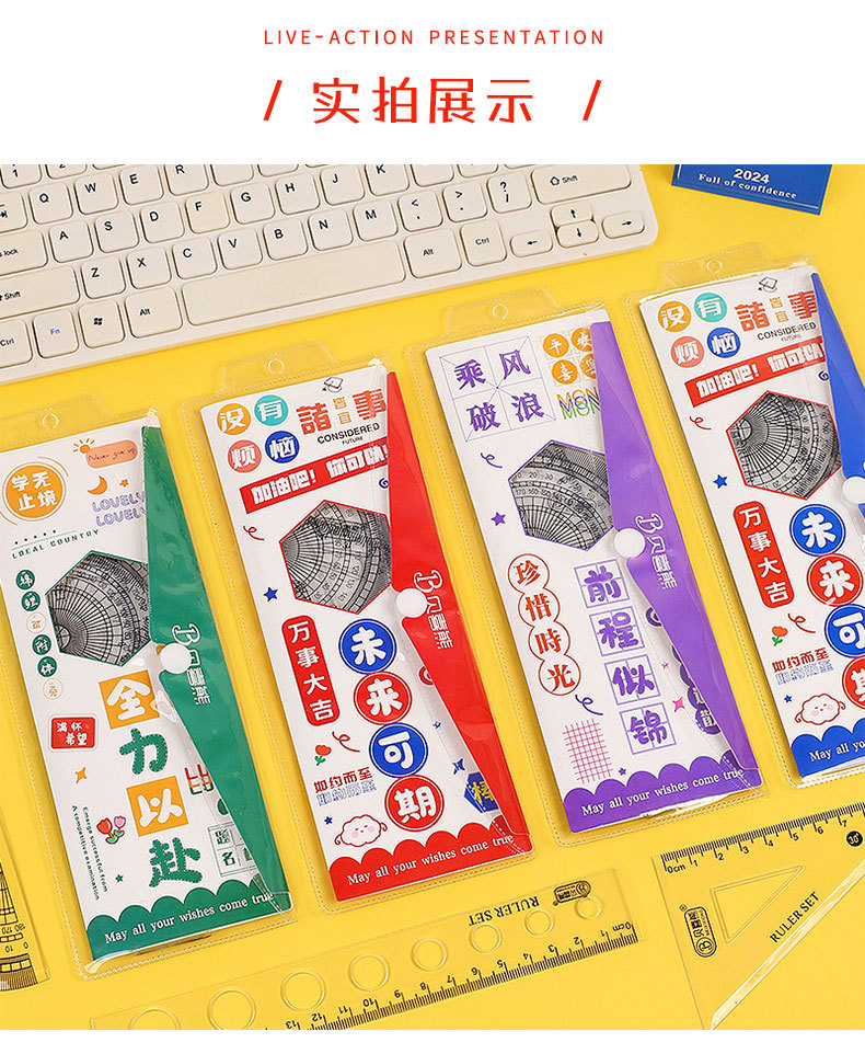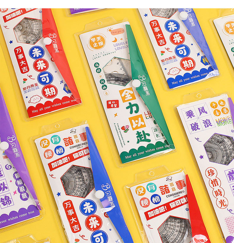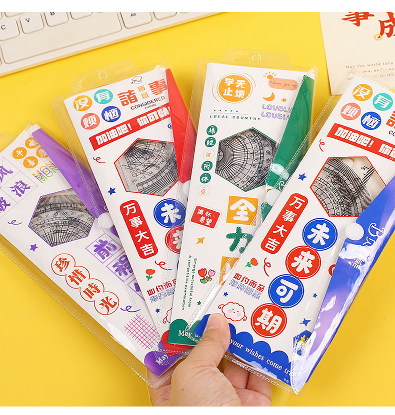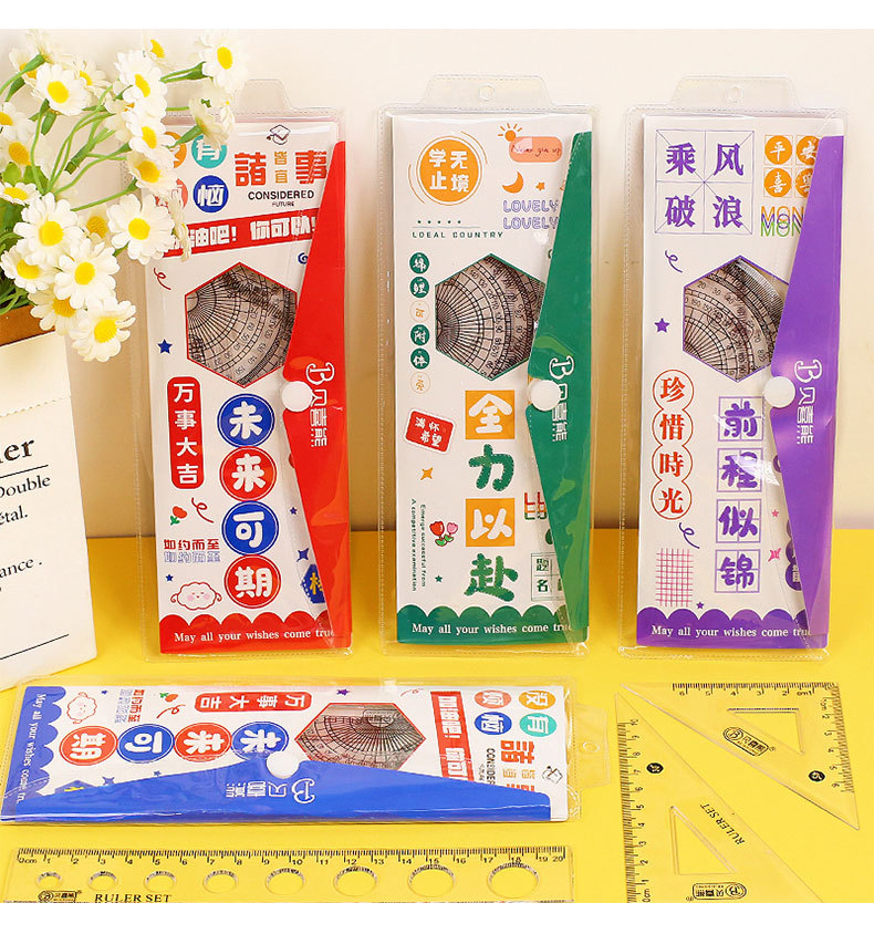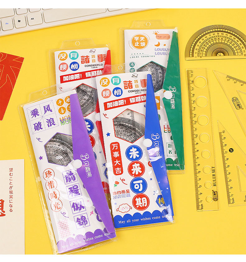 영감을주는 텍스트 세트 통치자 학생 귀여운 문구 삼각형 통치자 각도기는 4 피스 세트 그리기 도구를 나침합니다.스토어 가기