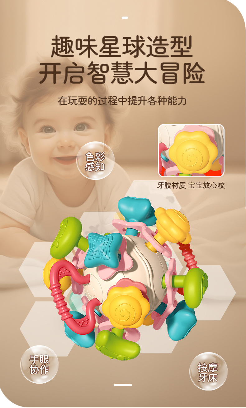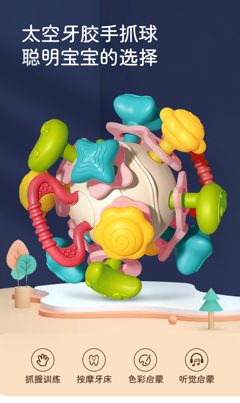 크로스 보더 유아 맨해튼 우주 핸드 헬드 볼 삶은 어금니 부드러운 고무 아기 조기 교육 터치 및 파악 장난감