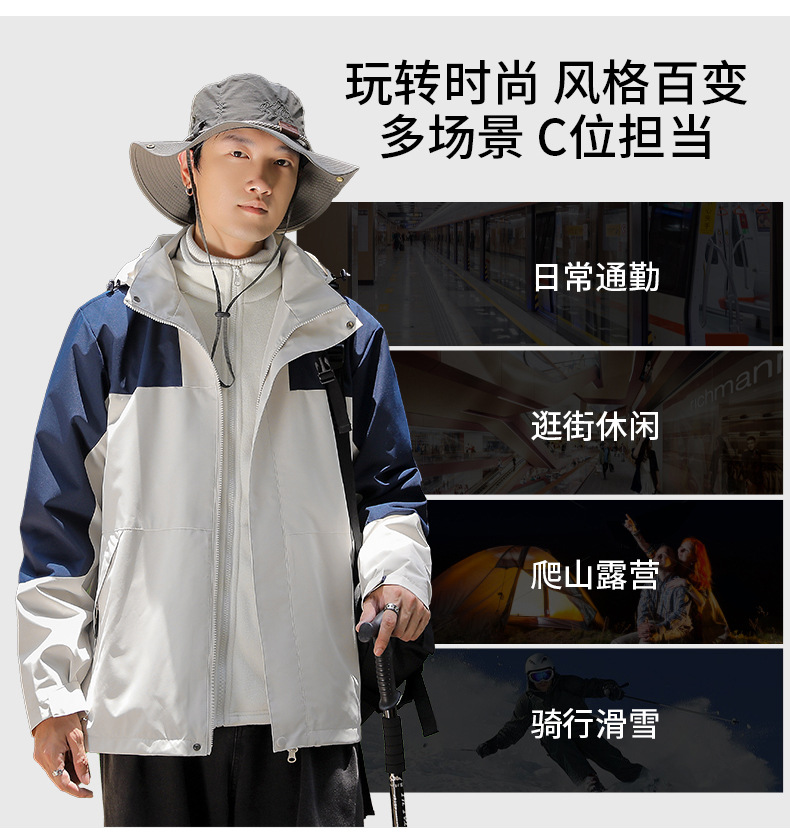 새로운 커플 아웃도어 러쉬 의류 남성 쓰리 인 원 가을 남성 작업복 투피스 세트 여성 등산 자켓