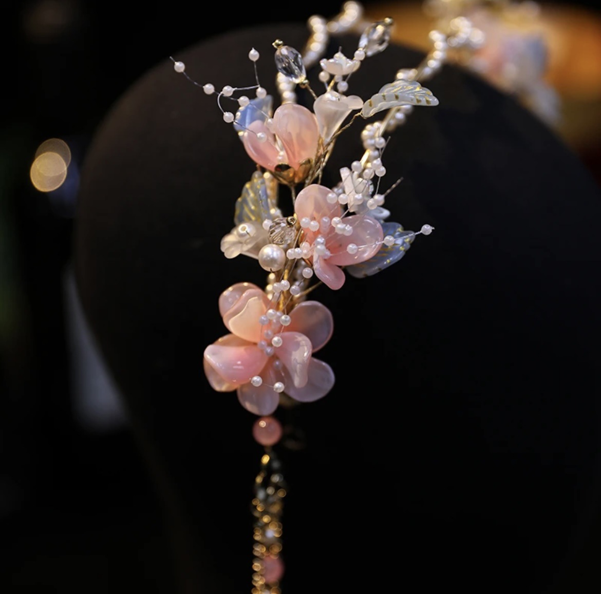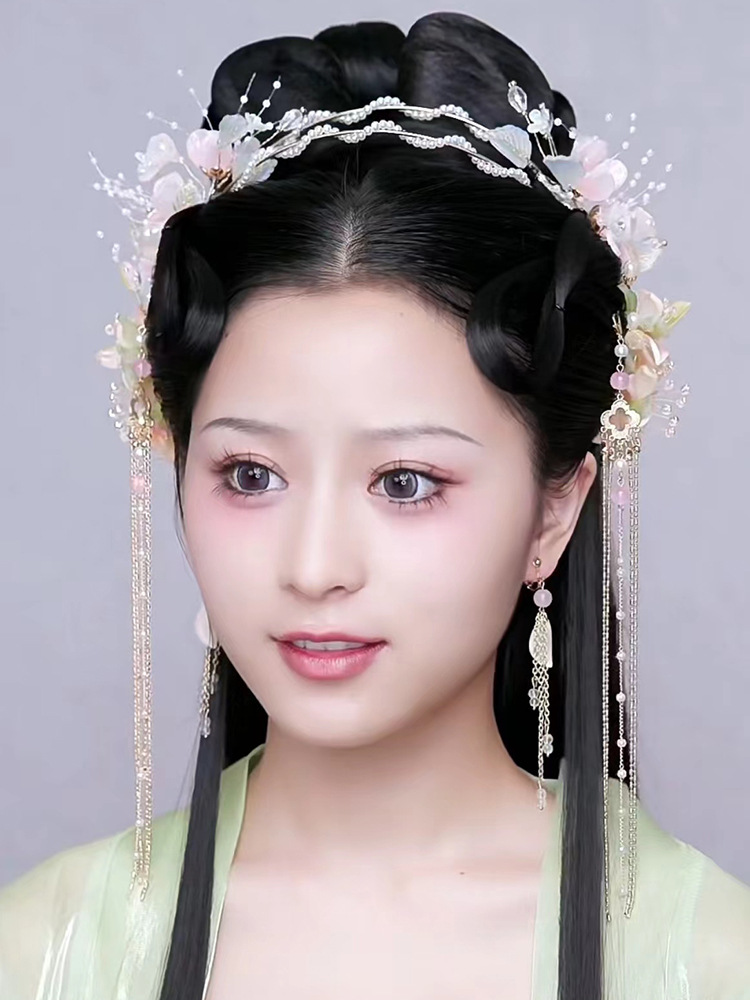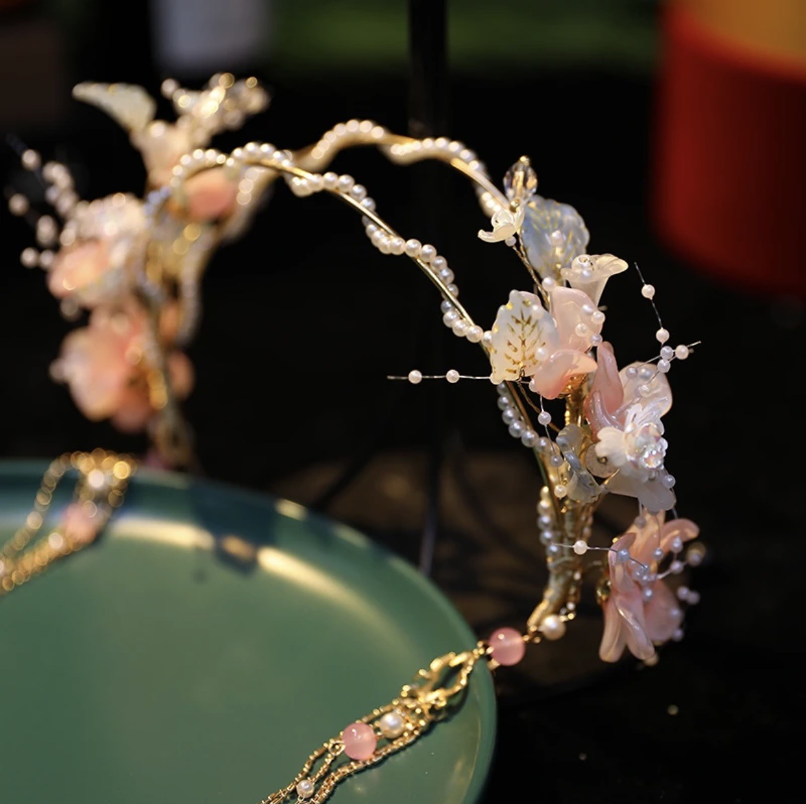 원래 골동품 헤어 액세서리 세트 슈퍼 요정 술 헤어 후프 고급 Hanfu 모자 글레이즈 꽃 헤어 크라운 귀걸이 전체 세트스토어 가기