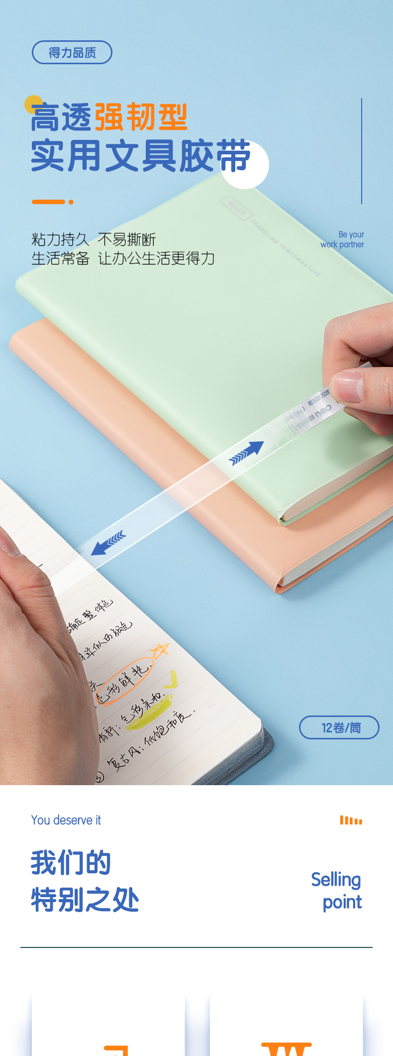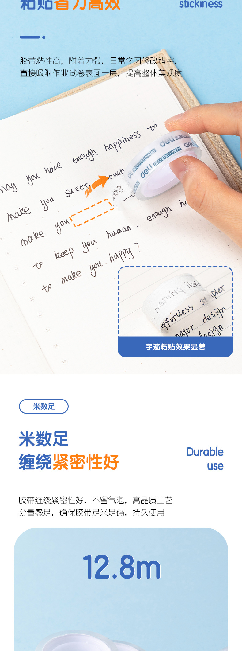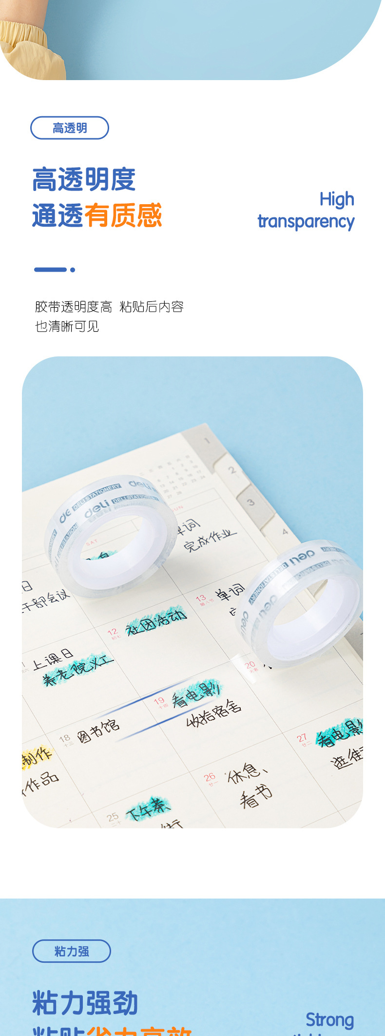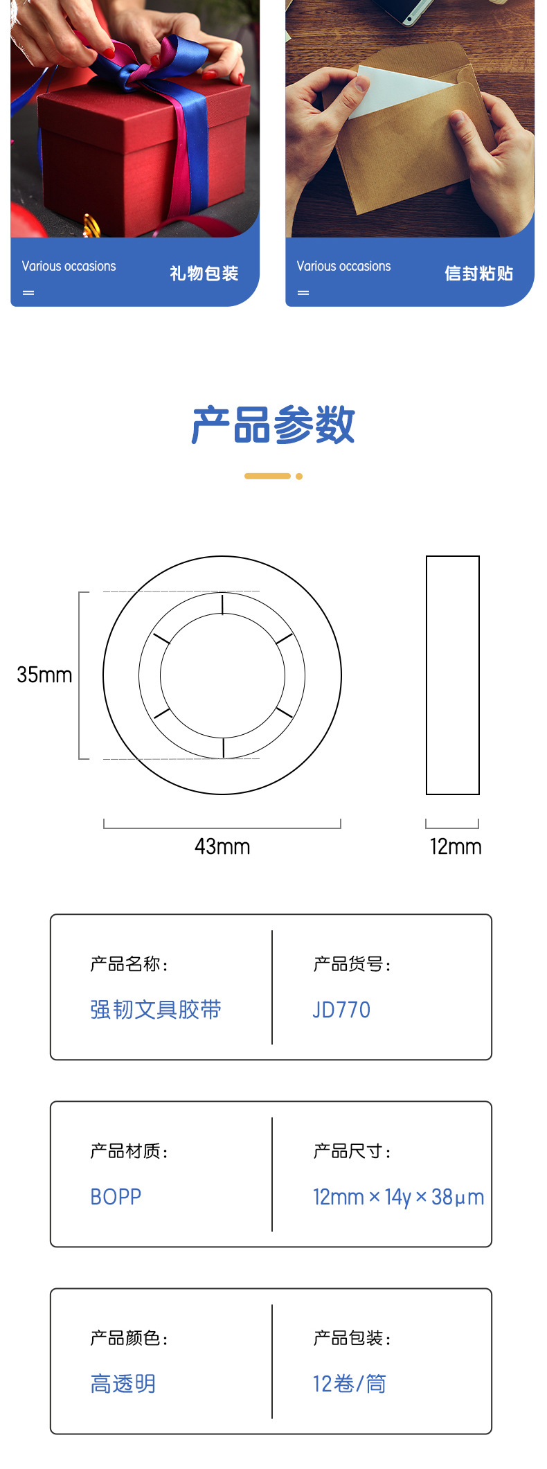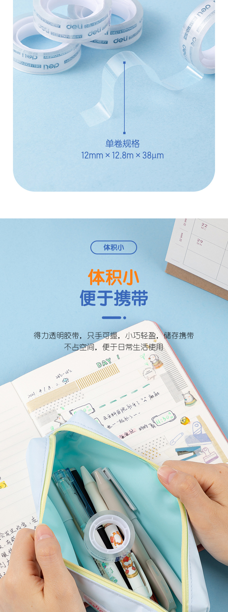 델리 JD770 문구 테이프 투명 소형 테이프 12mm 고점도 학생 사무실 테이프 배럴 도매스토어 가기
