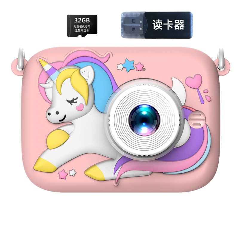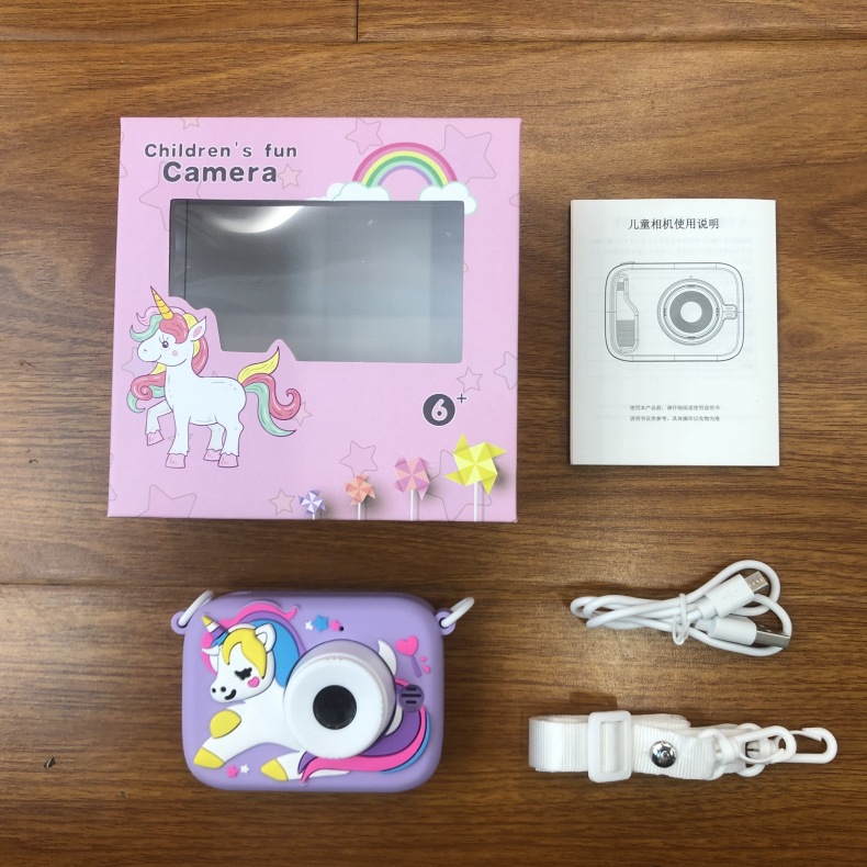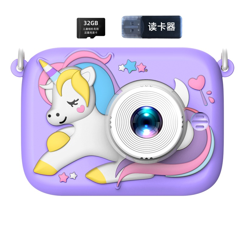 국경을 넘는 듀얼 렌즈 어린이 카메라 미키 유니콘 만화 장난감 소형 DSLR 디지털 카메라 고화질 듀얼 카메라