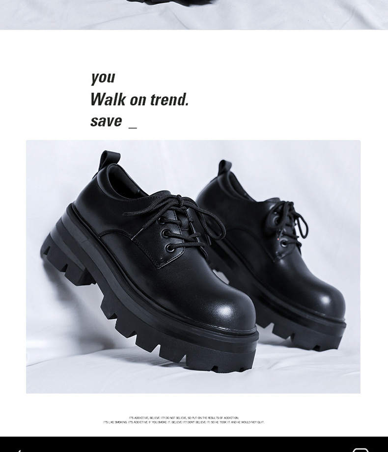 캐주얼 가죽 신발 두꺼운 바닥 라운드 발가락 비즈니스 스타일 더비 신발 가을과 겨울 새로운 일본 스타일 높이 낮은 탑 마틴 부츠