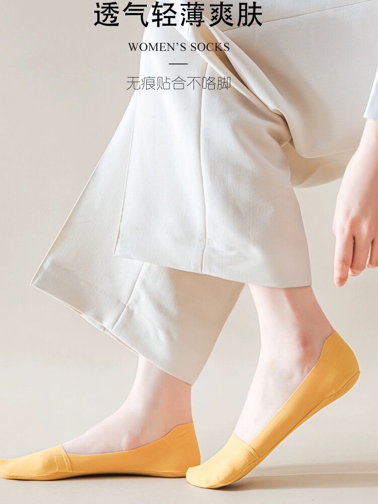 여성용 보트 양말 여름 얇은 미끄럼 방지 미끄럼 방지 하이힐 양말 원활한 얼음 실크 땀 흡수 탈취제 얕은 입 보이지 않는 양말스토어 가기