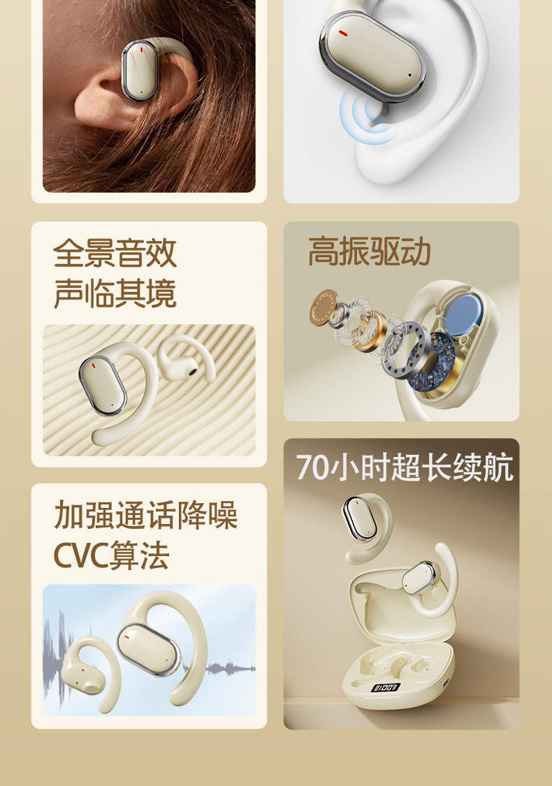 새로운 X93 블루투스 헤드셋, 인이어형이 아닌 무선 이어훅형, 미니 노이즈 캔슬링, 초장시간 배터리 수명, 스테레오 사운드, 도매