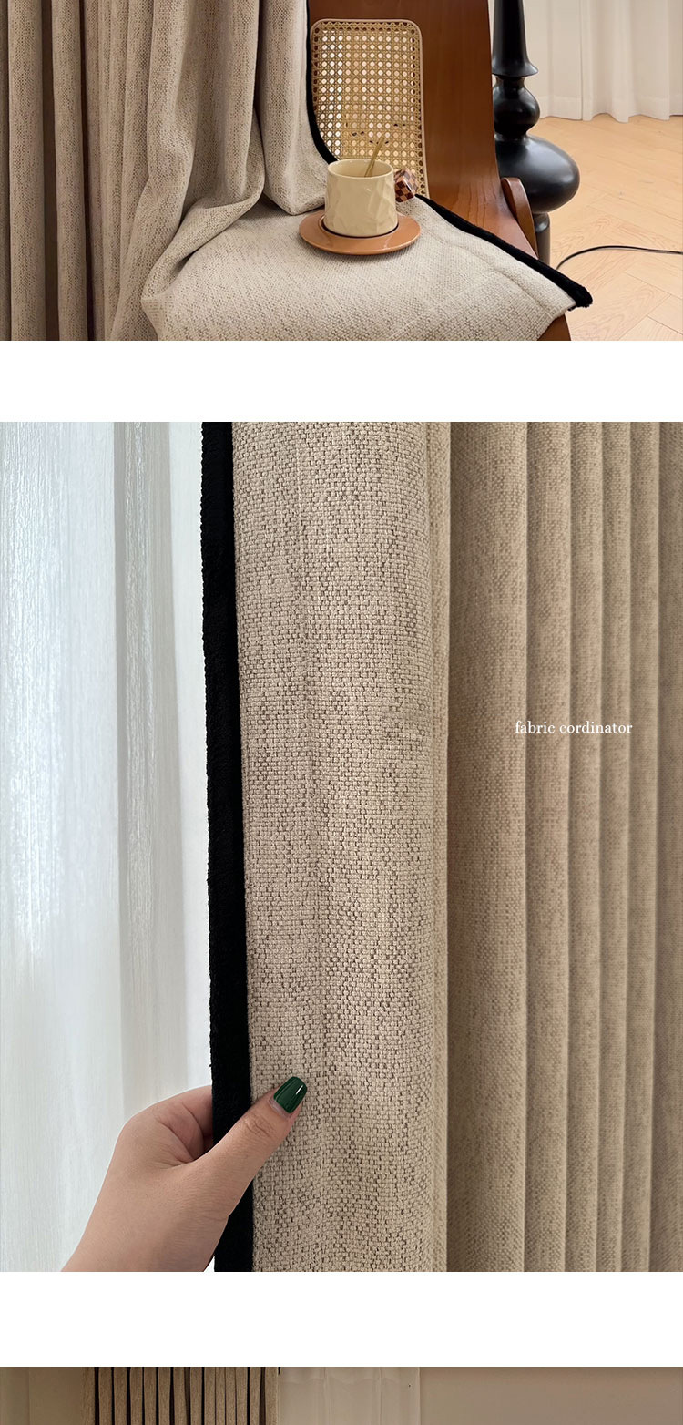 프랑스 셔닐 실 복고풍 중세 스타일 난양 미국 검은 가장자리 거실 침실 발코니 소흥 커튼 천으로 무료 스타일링스토어 가기