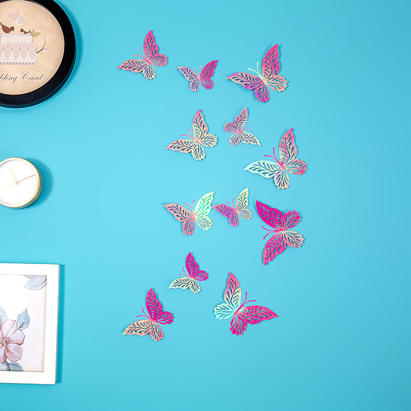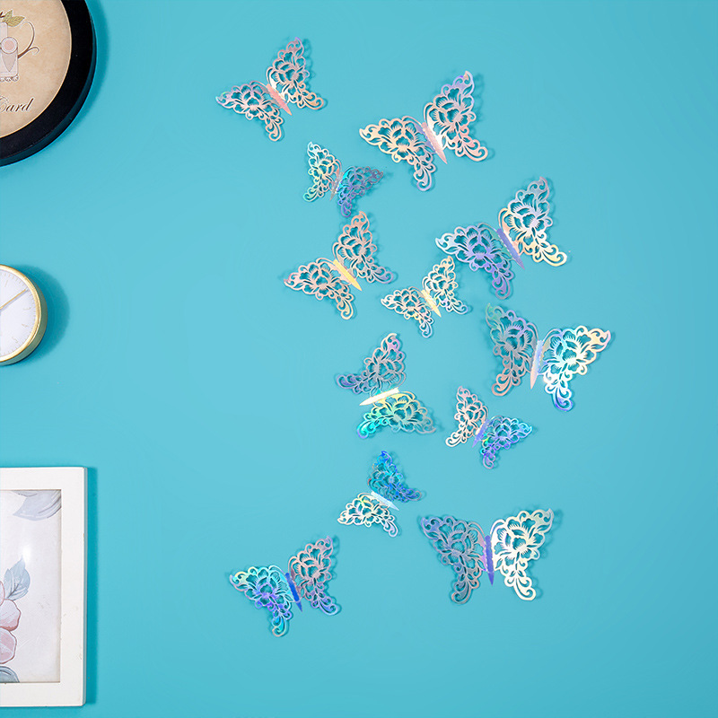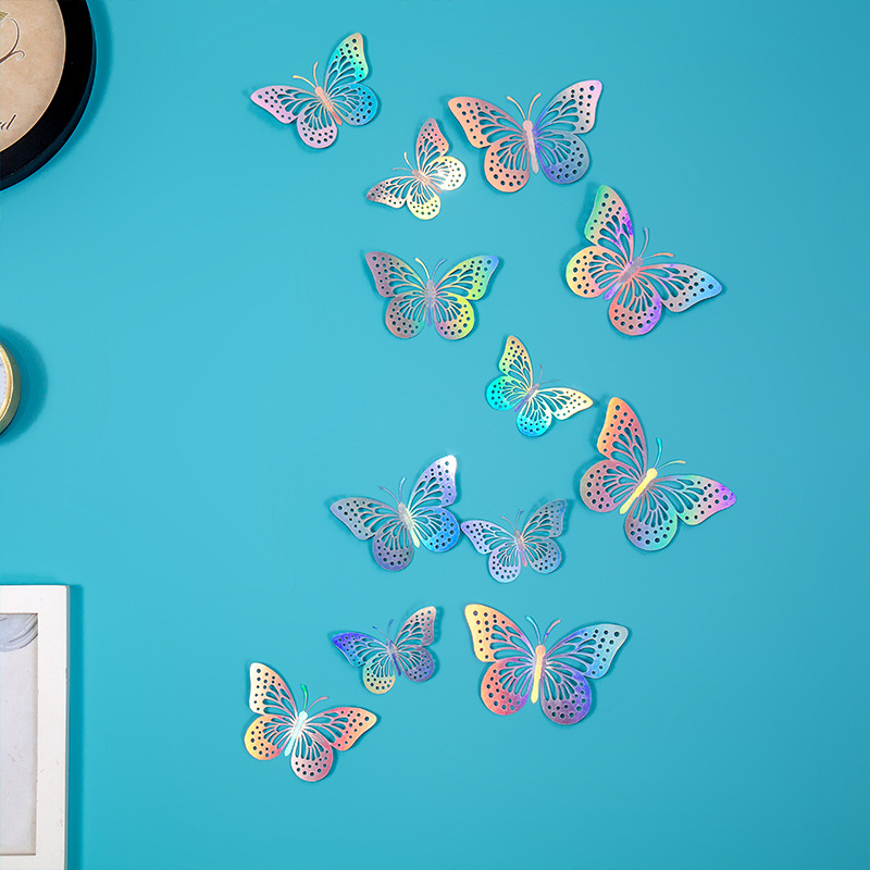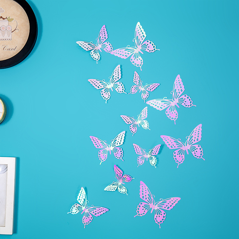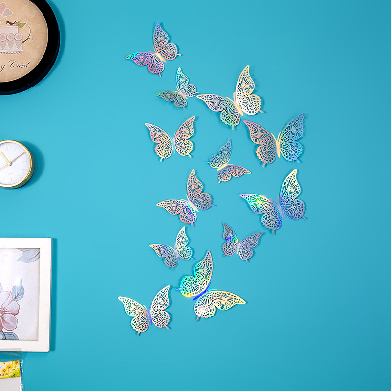 속이 빈 나비 3D 속이 빈 모조 금속 나비 벽 장식 홈 거실 입체 나비 장식 스티커