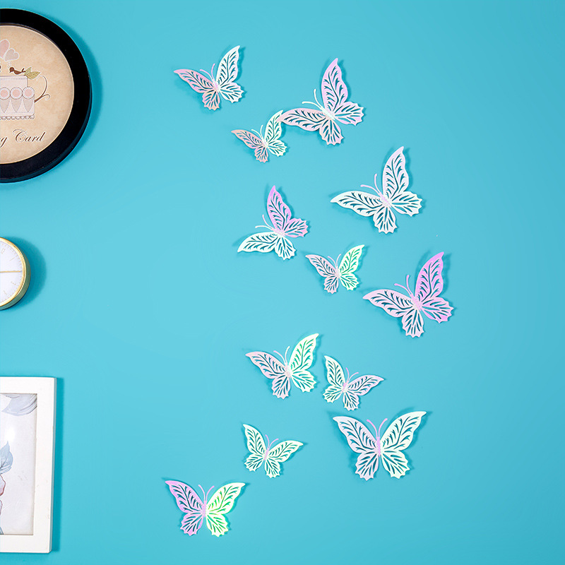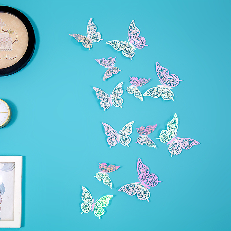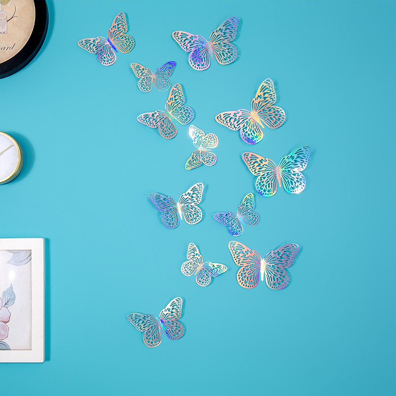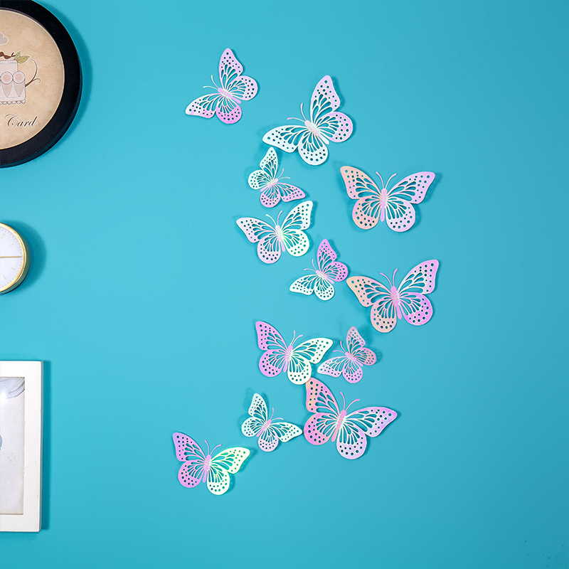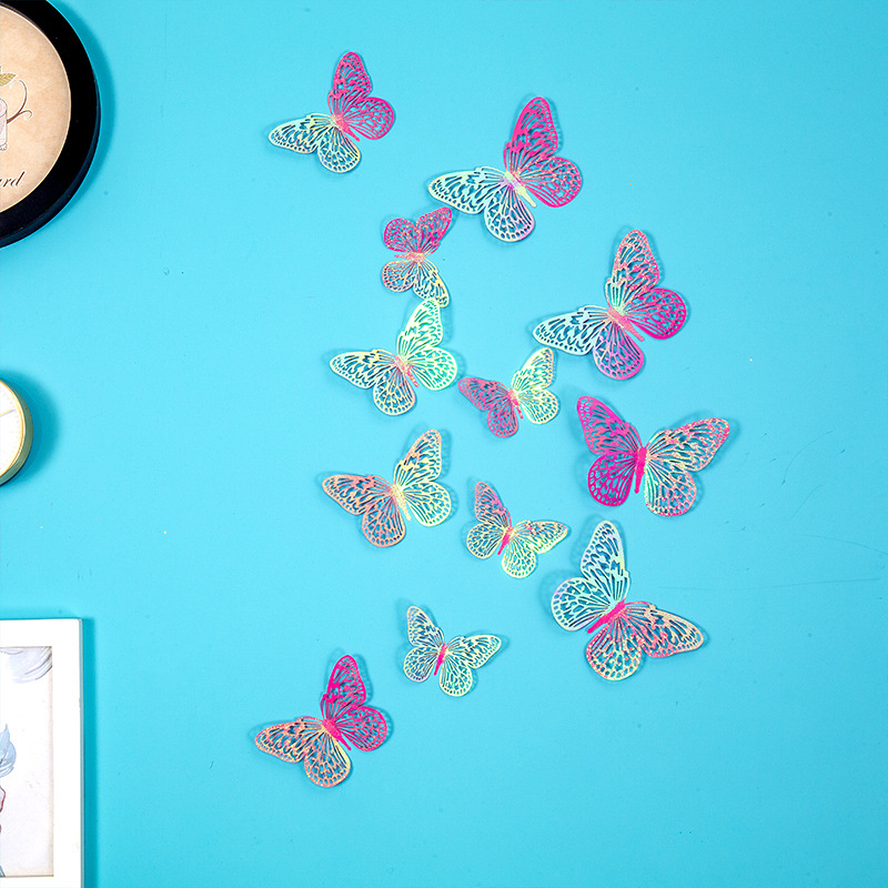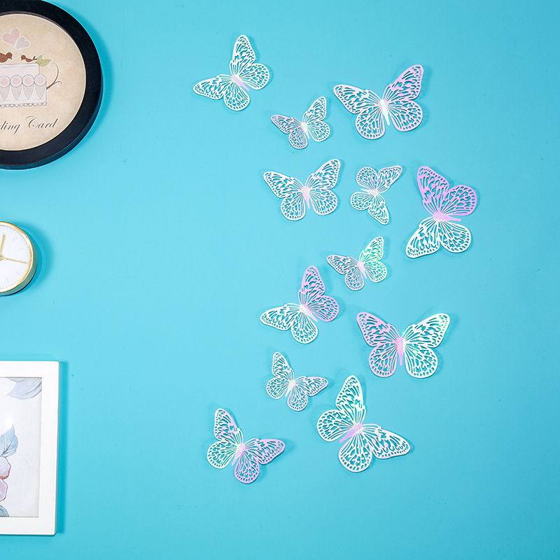 속이 빈 나비 3D 속이 빈 모조 금속 나비 벽 장식 홈 거실 입체 나비 장식 스티커