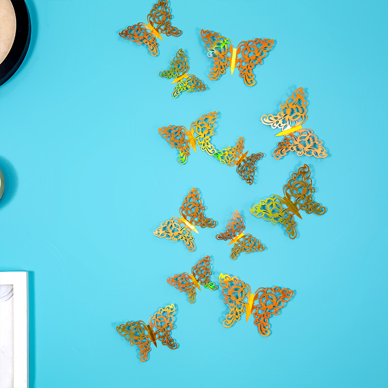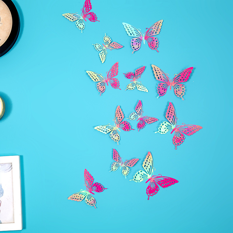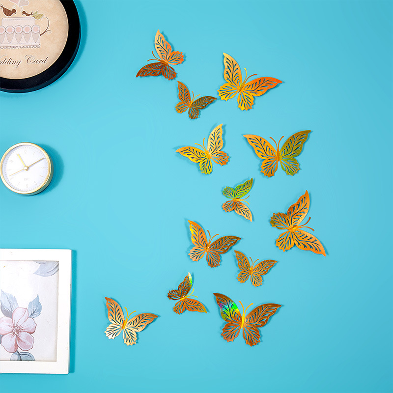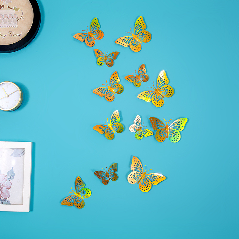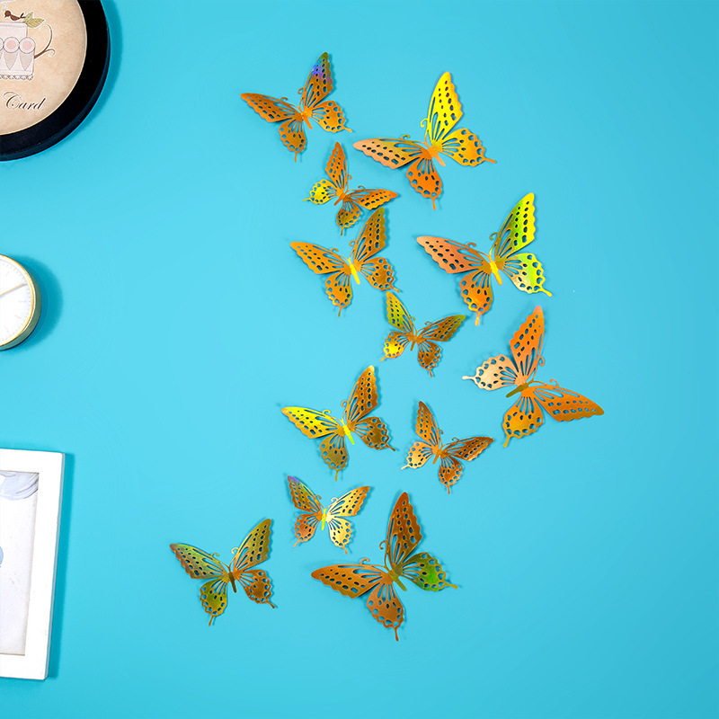 속이 빈 나비 3D 속이 빈 모조 금속 나비 벽 장식 홈 거실 입체 나비 장식 스티커스토어 가기