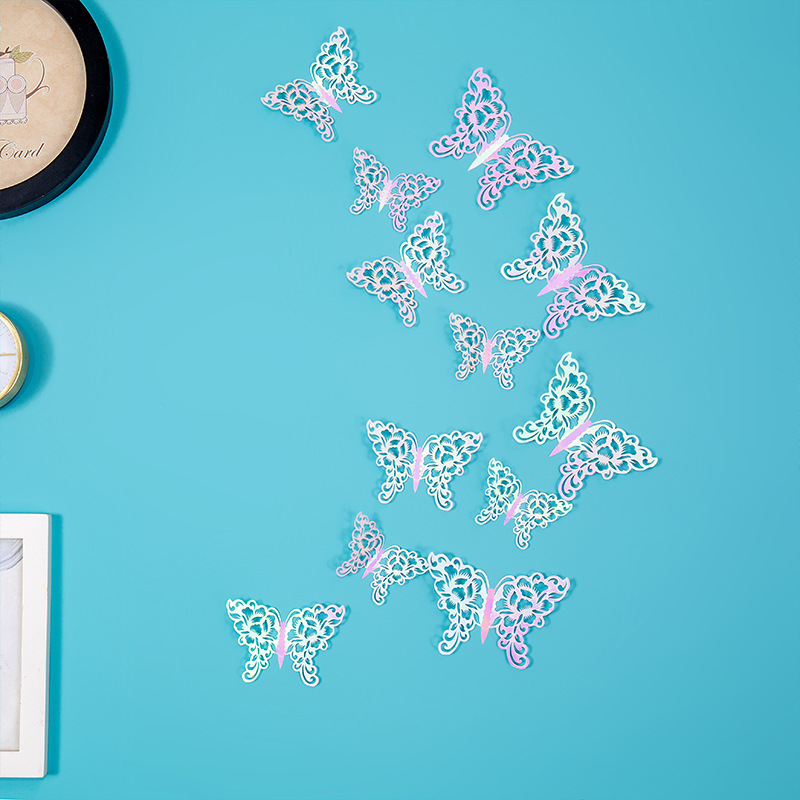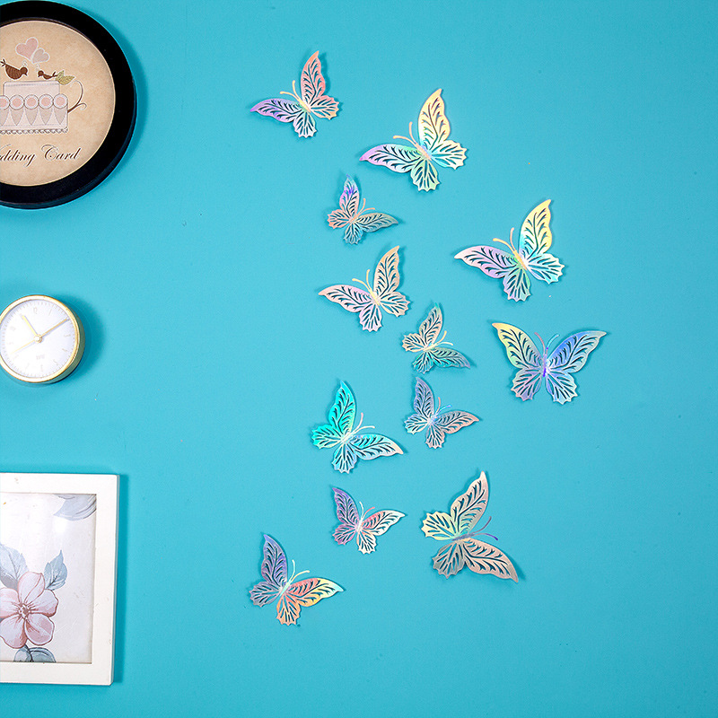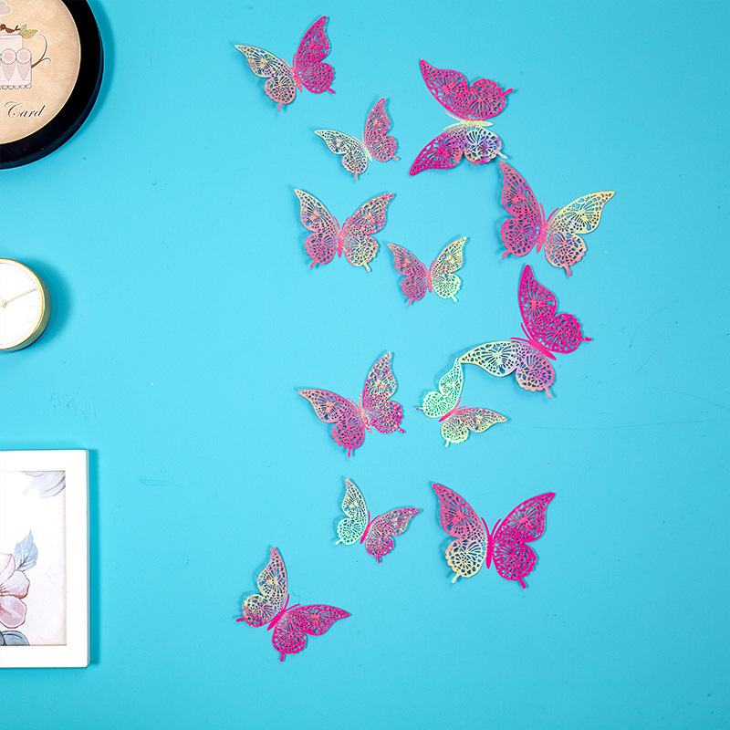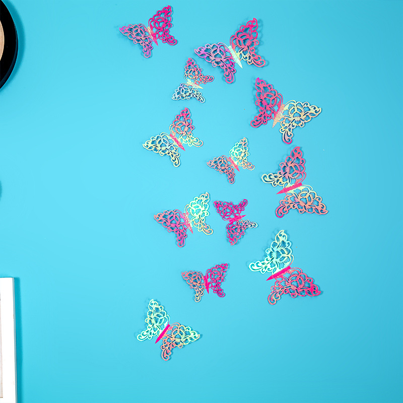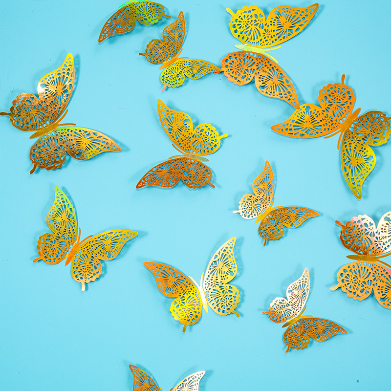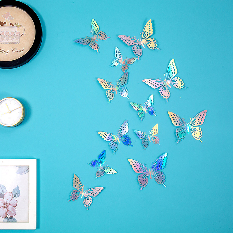 속이 빈 나비 3D 속이 빈 모조 금속 나비 벽 장식 홈 거실 입체 나비 장식 스티커스토어 가기