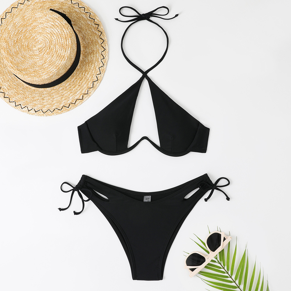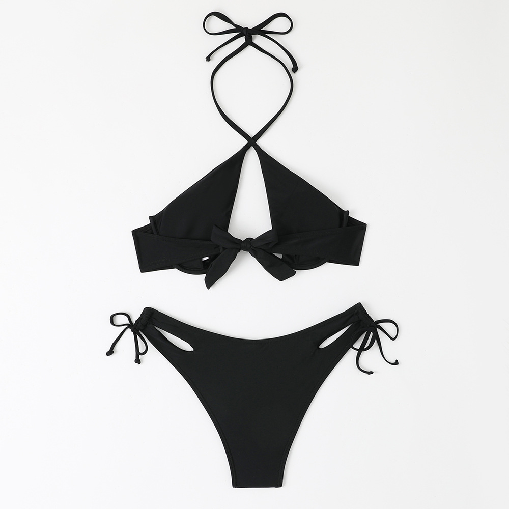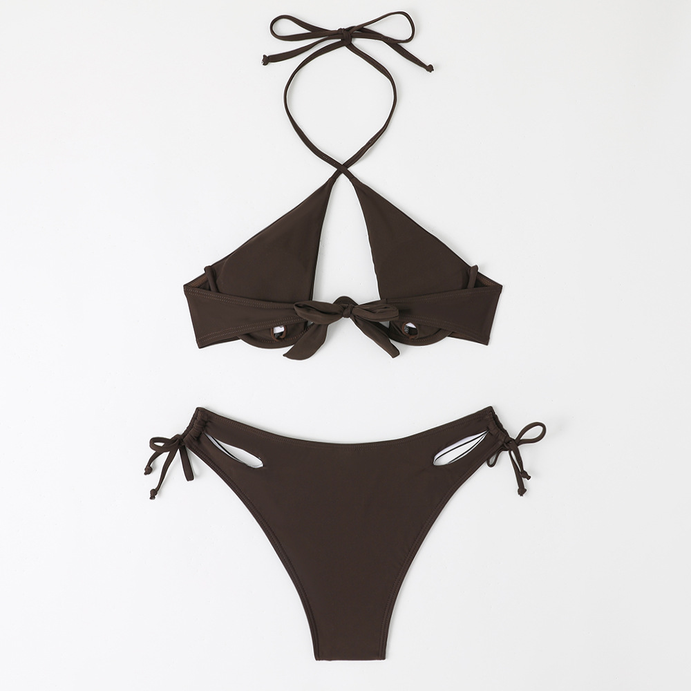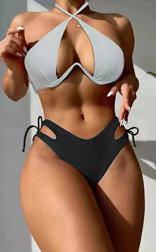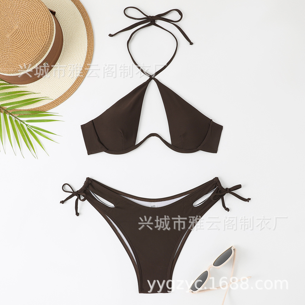 2024 새로운 섹시한 유럽과 미국 단색 여성용 스플릿 BIKINI 크로스 보더 아마존 레이스 업 수영복 여성용 BIKINI스토어 가기