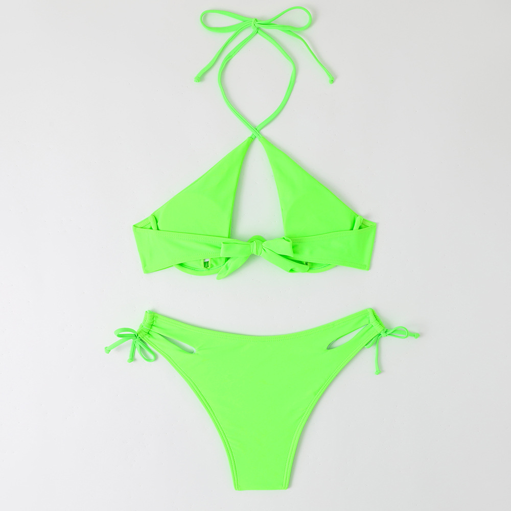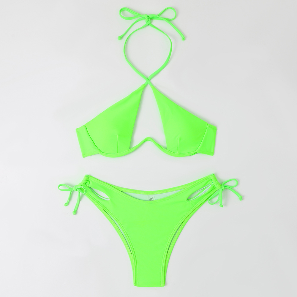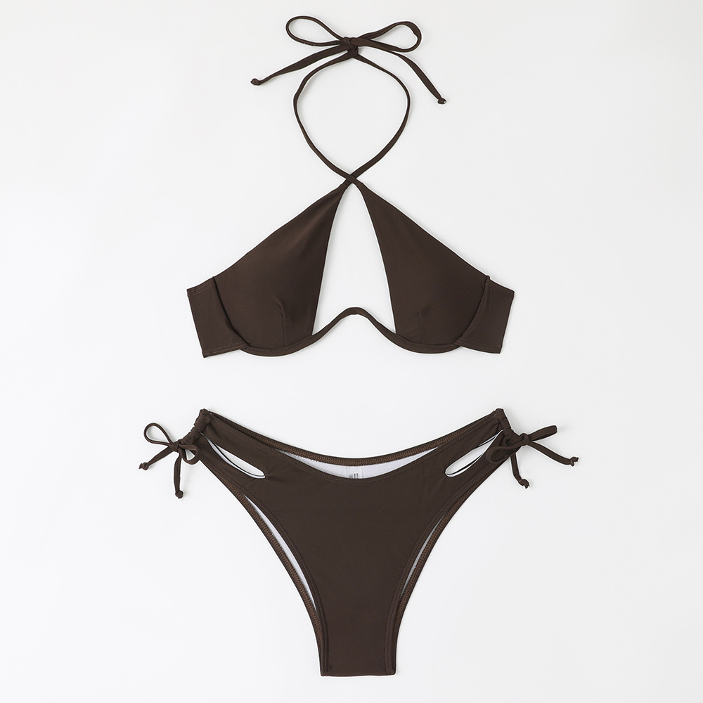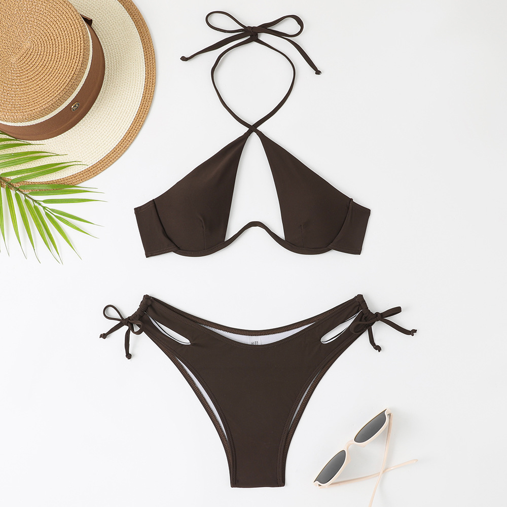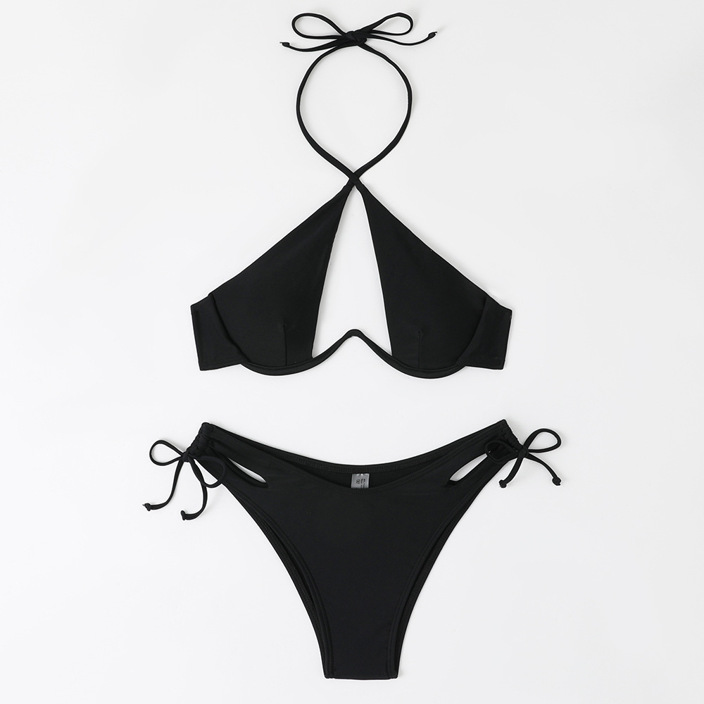 2024 새로운 섹시한 유럽과 미국 단색 여성용 스플릿 BIKINI 크로스 보더 아마존 레이스 업 수영복 여성용 BIKINI스토어 가기