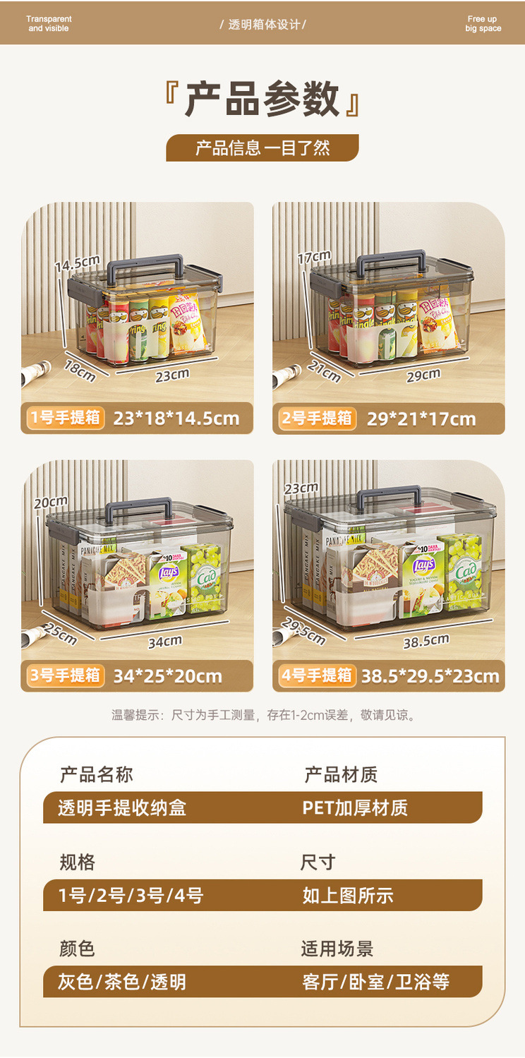 휴대용 투명 저장 상자 가정용 두꺼운 옷 간식 잡화 플라스틱 저장 상자 저장 상자 보관 상자