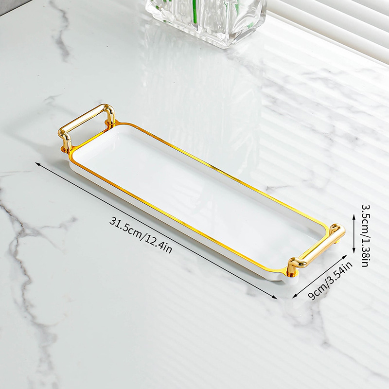 • 긴 판 큰 금 가장자리 [작은 6]-도자기 흰색