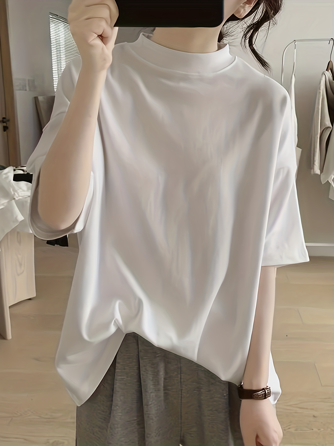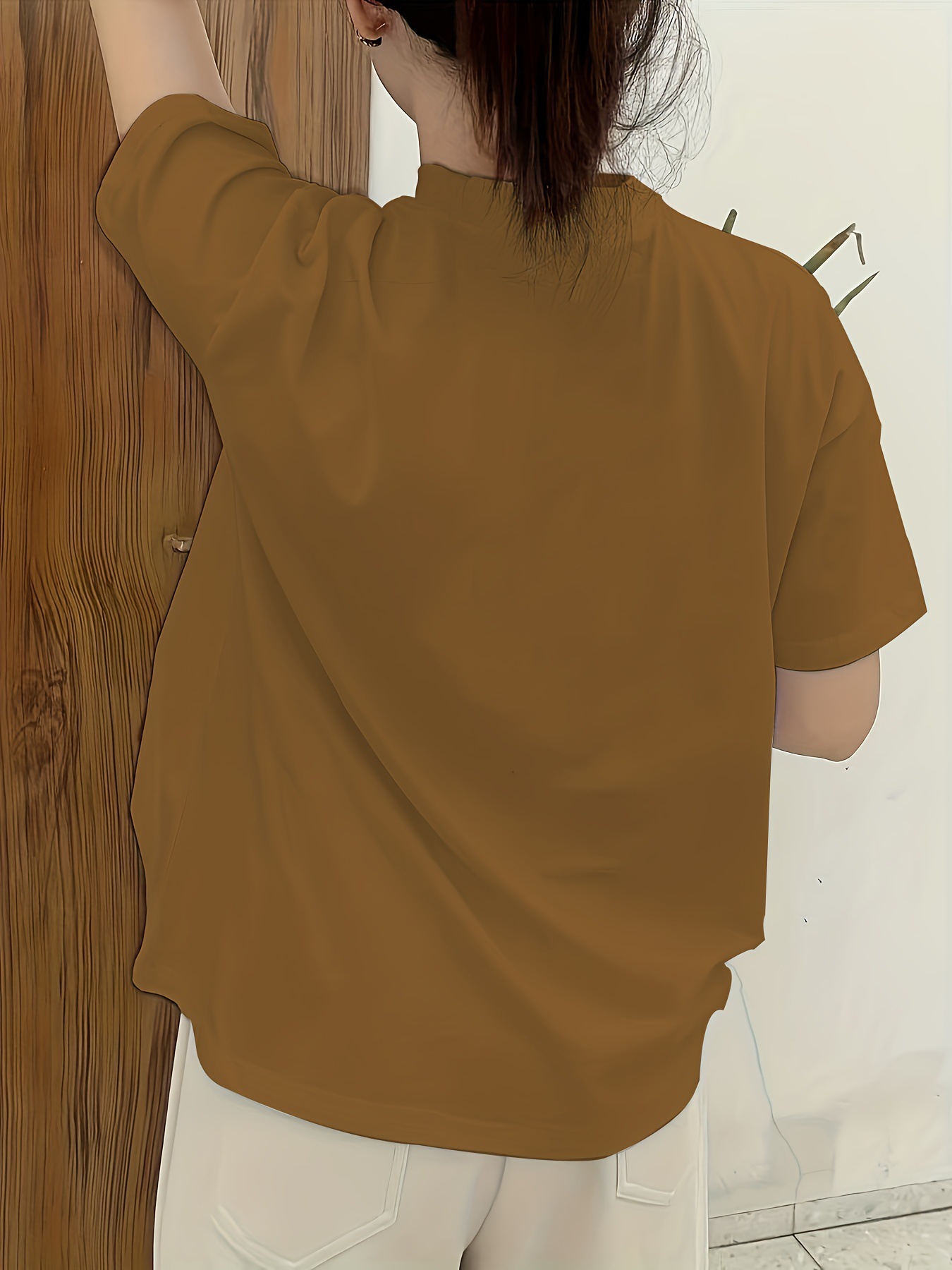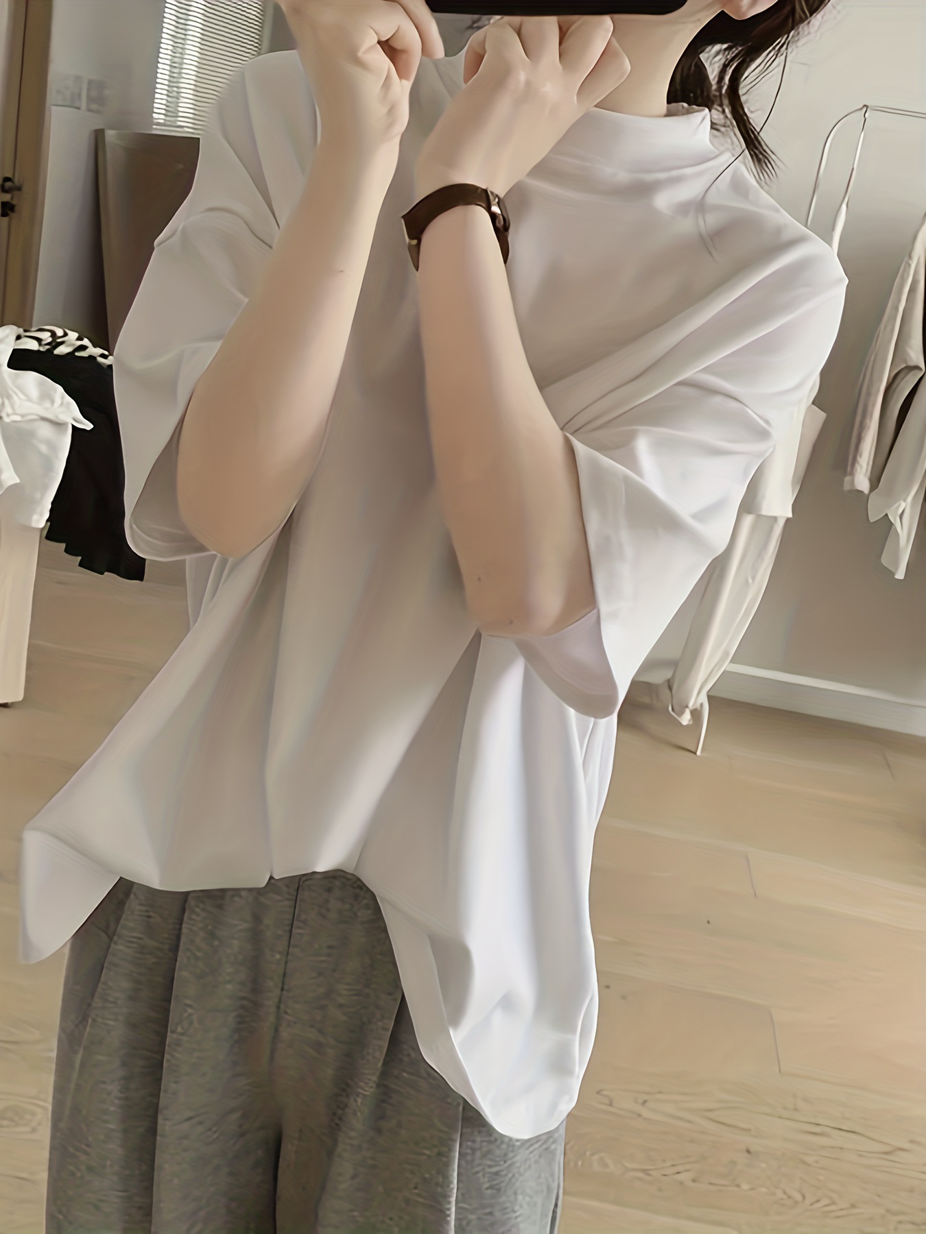 라운드 넥 티셔츠 여성용 TikTok 봄 새로운 느슨한 슬림 한국 스타일 심플 하프 슬리브 연령 감소 코튼 탑
