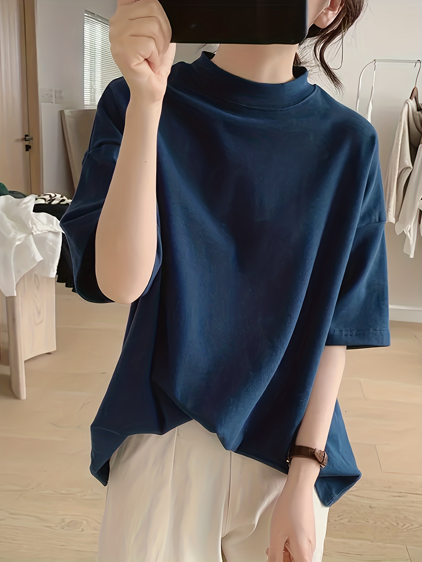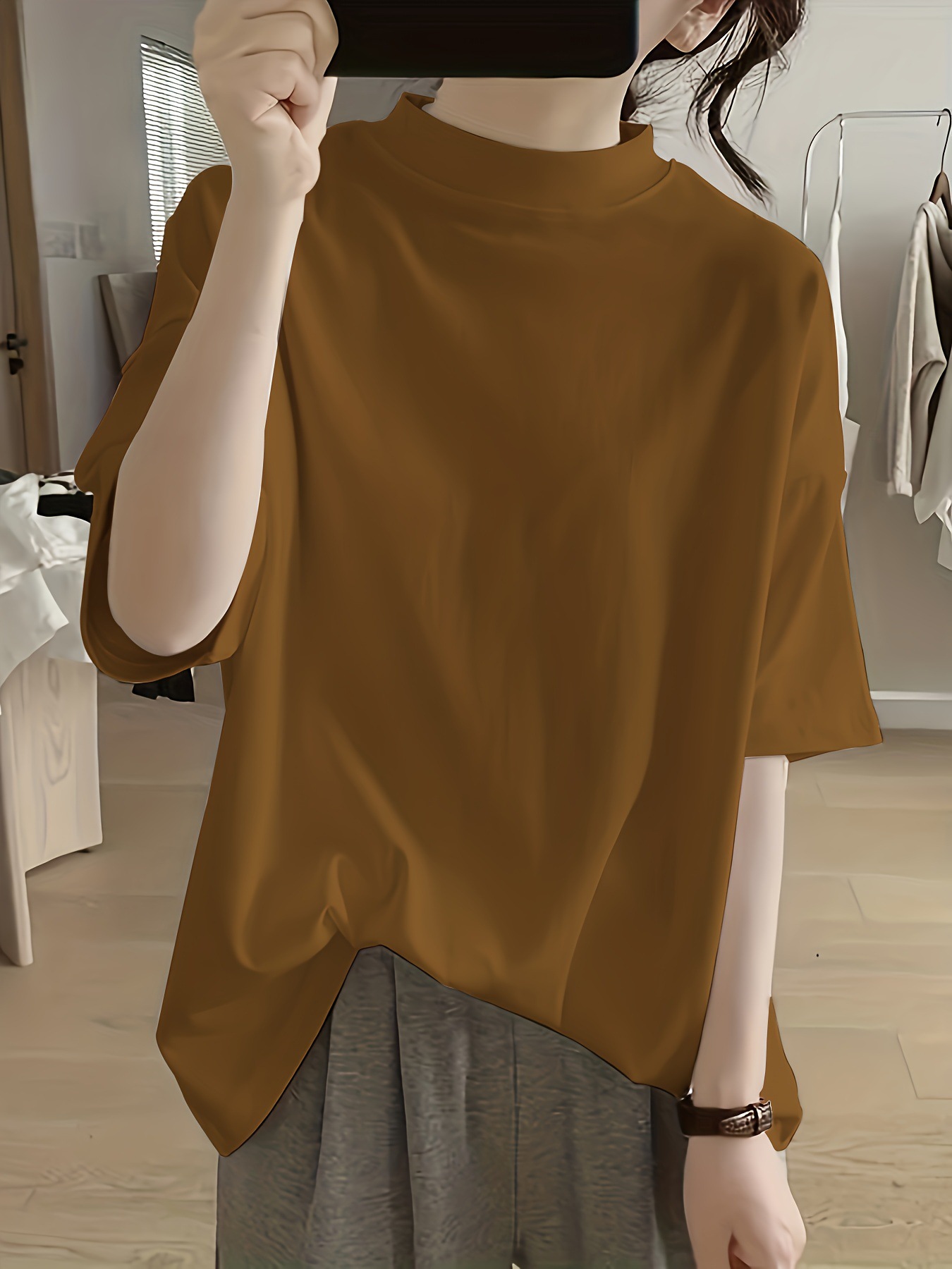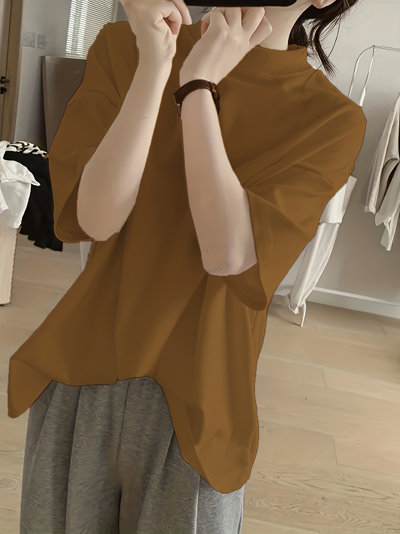 라운드 넥 티셔츠 여성용 TikTok 봄 새로운 느슨한 슬림 한국 스타일 심플 하프 슬리브 연령 감소 코튼 탑