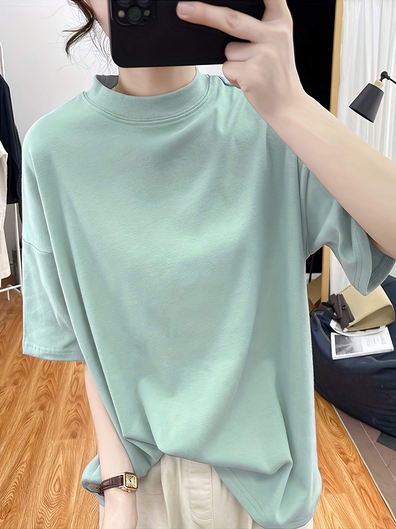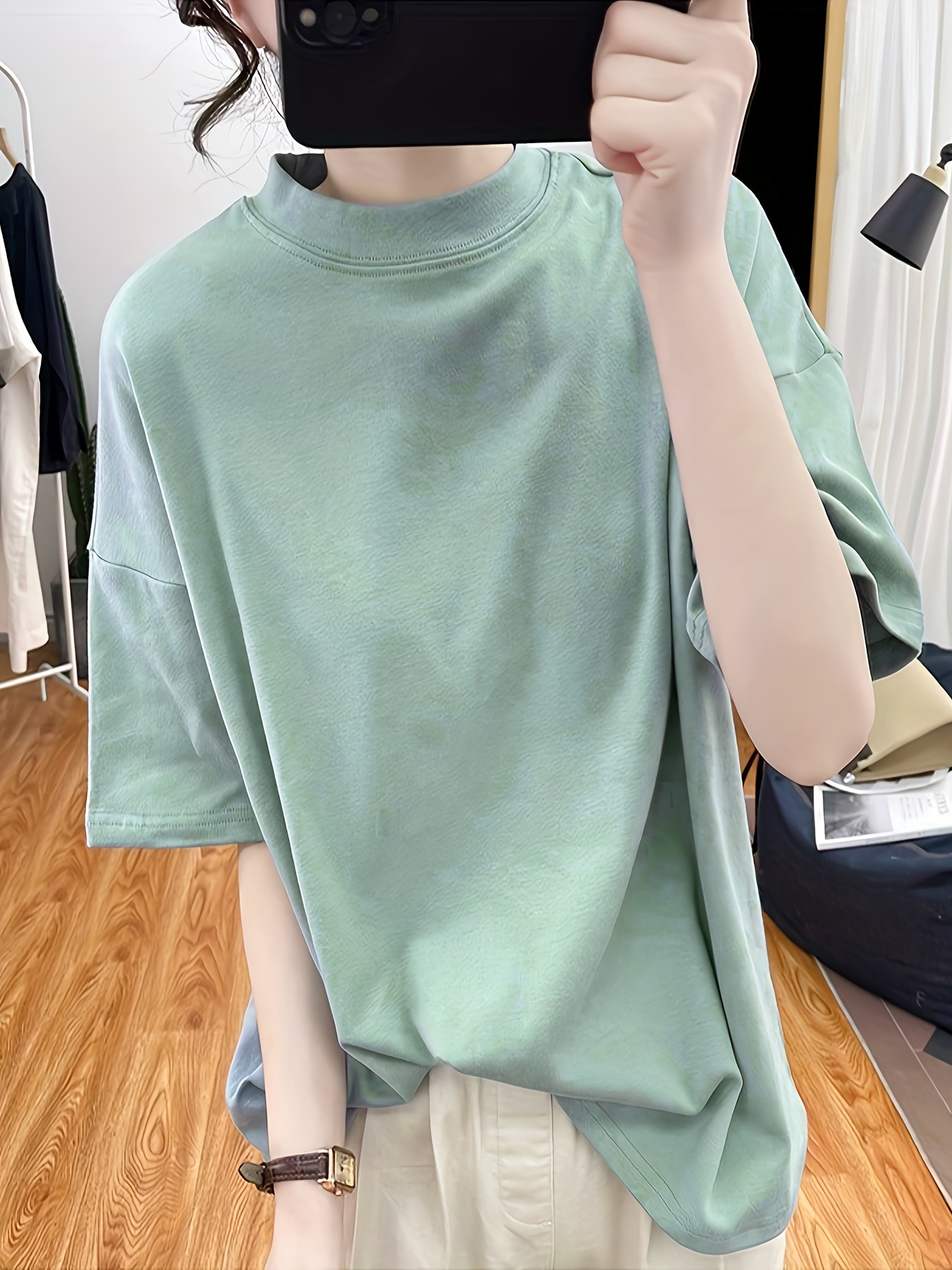 라운드 넥 티셔츠 여성용 TikTok 봄 새로운 느슨한 슬림 한국 스타일 심플 하프 슬리브 연령 감소 코튼 탑스토어 가기