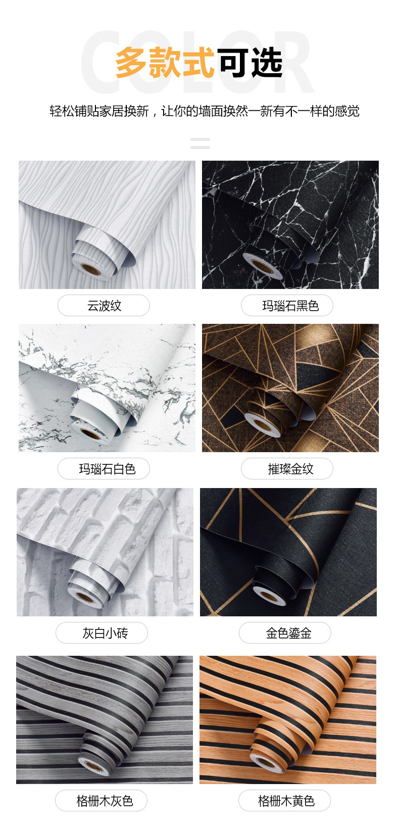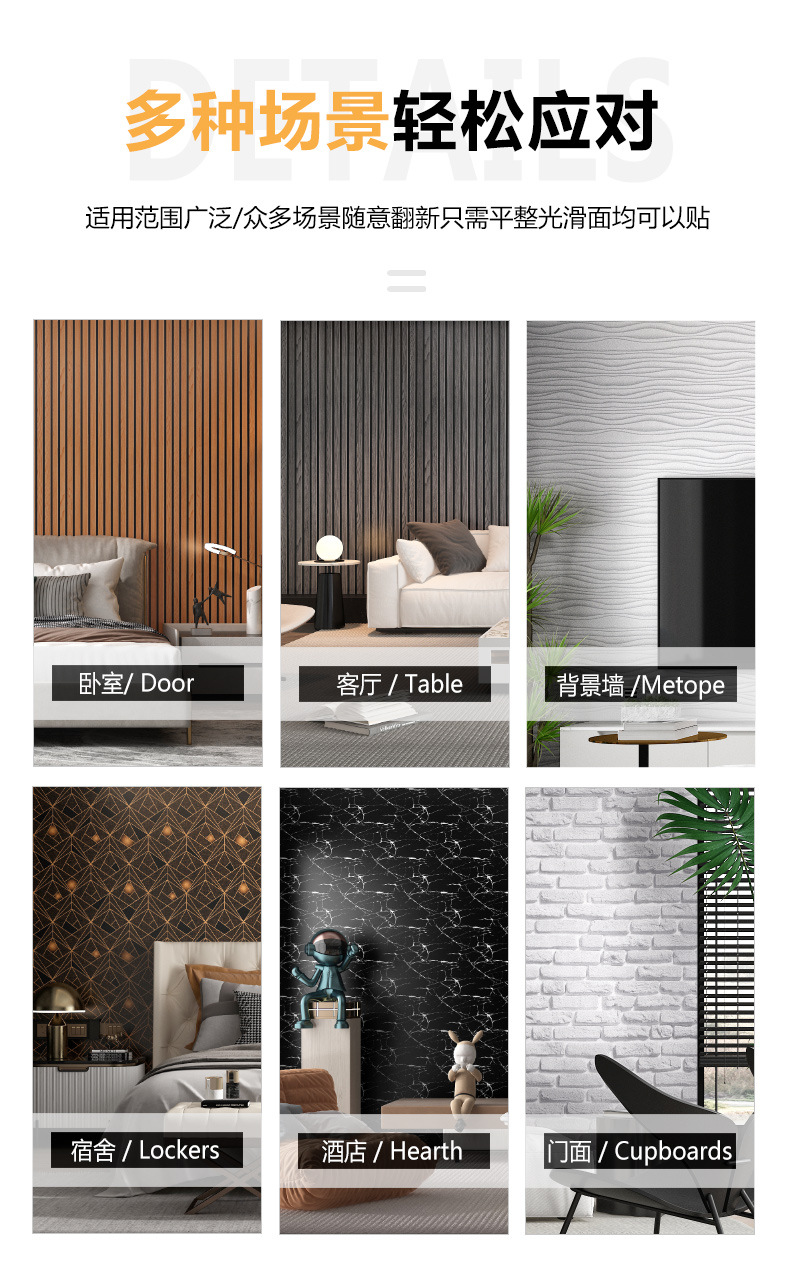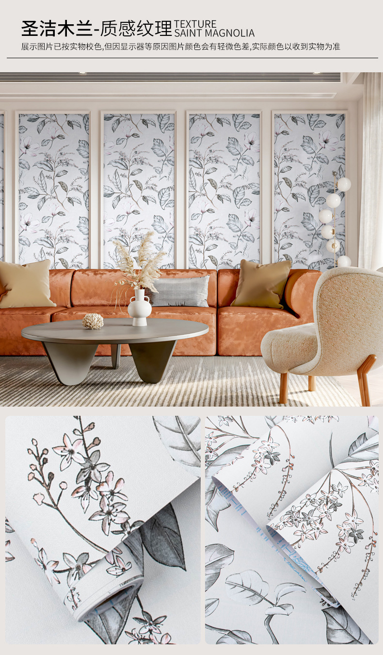 공장 도매 작은 롤 자체 접착 스티커 방수 벽 스티커 거실 침실 배경 벽 벽지 장식 혁신 벽지스토어 가기