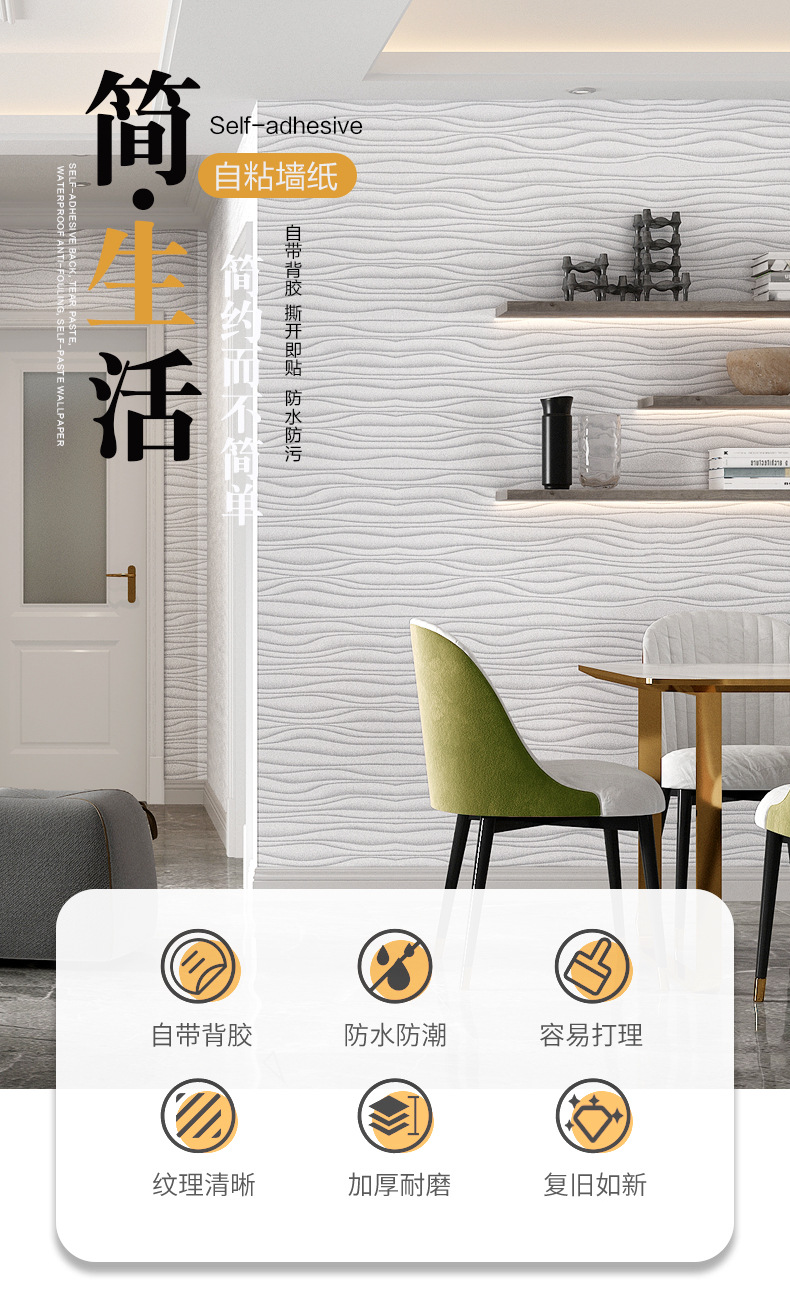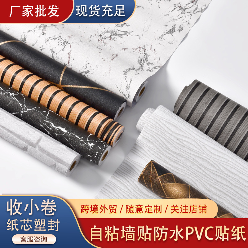공장 도매 작은 롤 자체 접착 스티커 방수 벽 스티커 거실 침실 배경 벽 벽지 장식 혁신 벽지