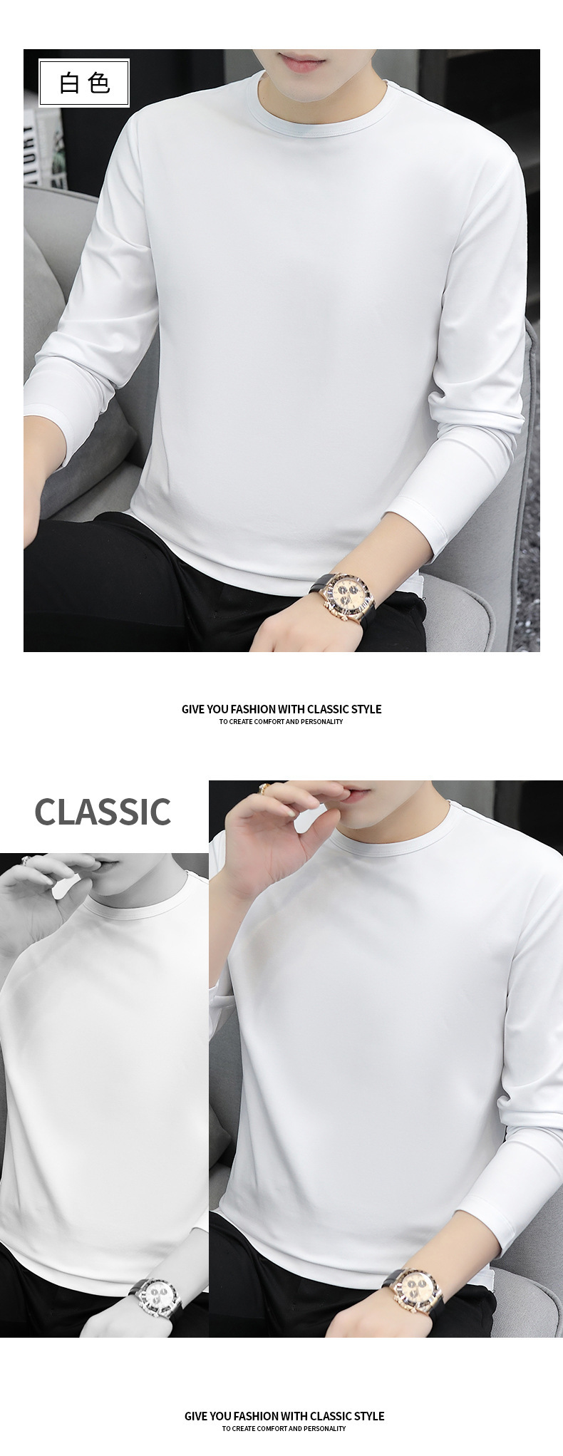 모델 코튼 화이트 긴팔 티셔츠 남자의 봄과 가을 새로운 내부 탑 솔리드 컬러 베이스 셔츠 스웨터 가을 옷스토어 가기