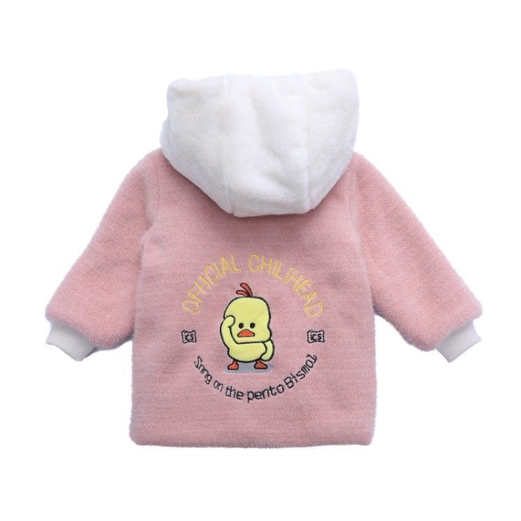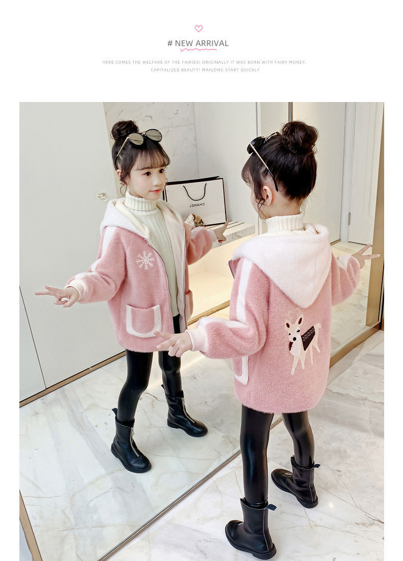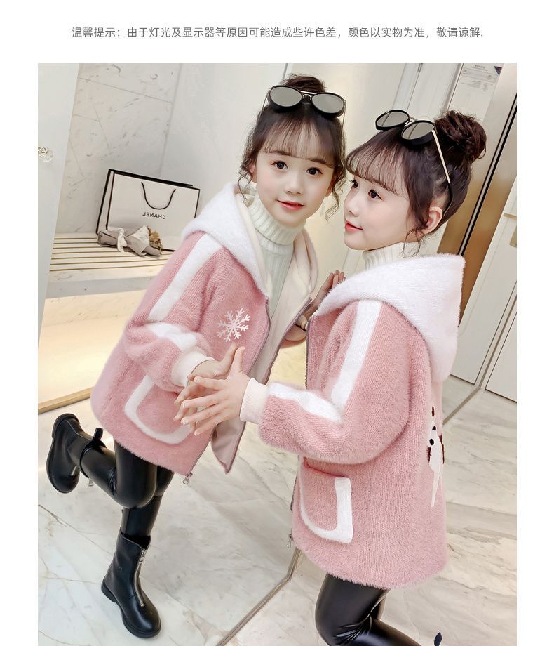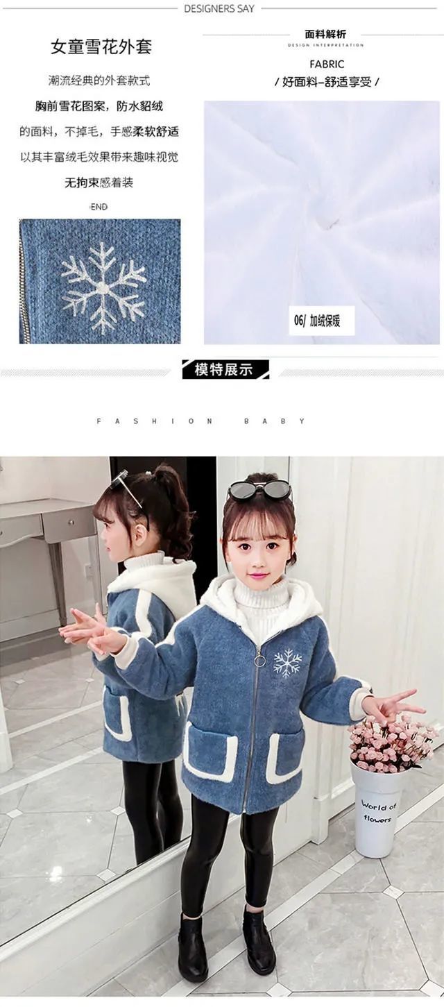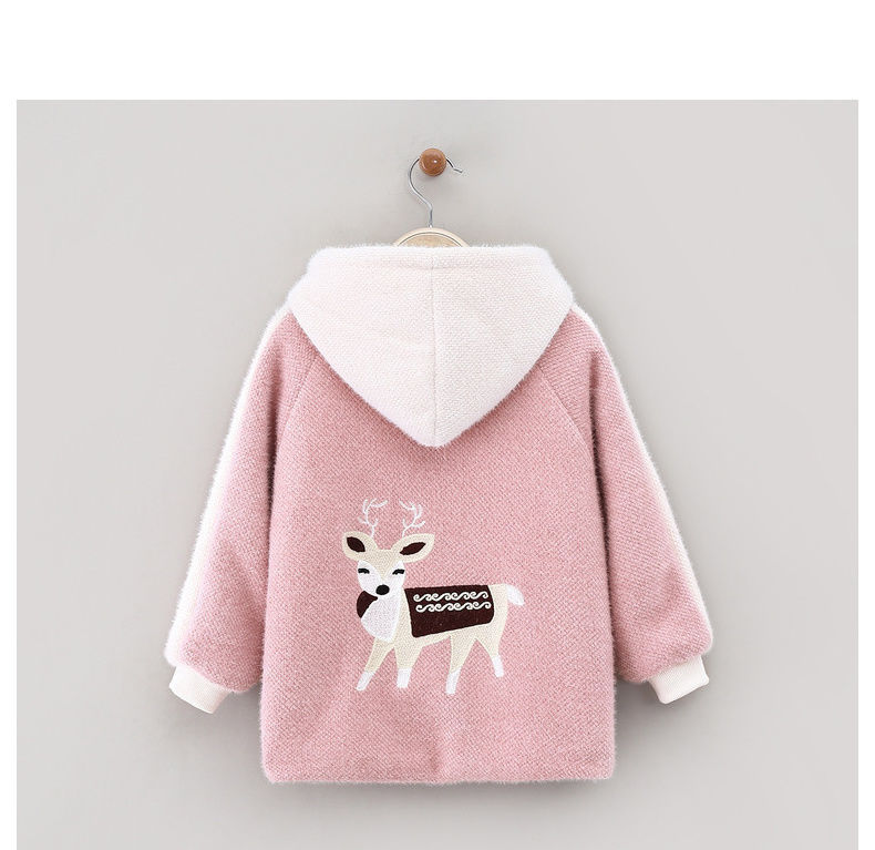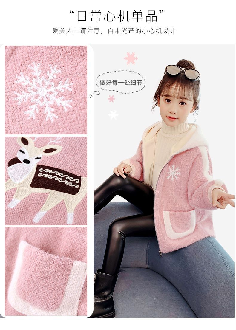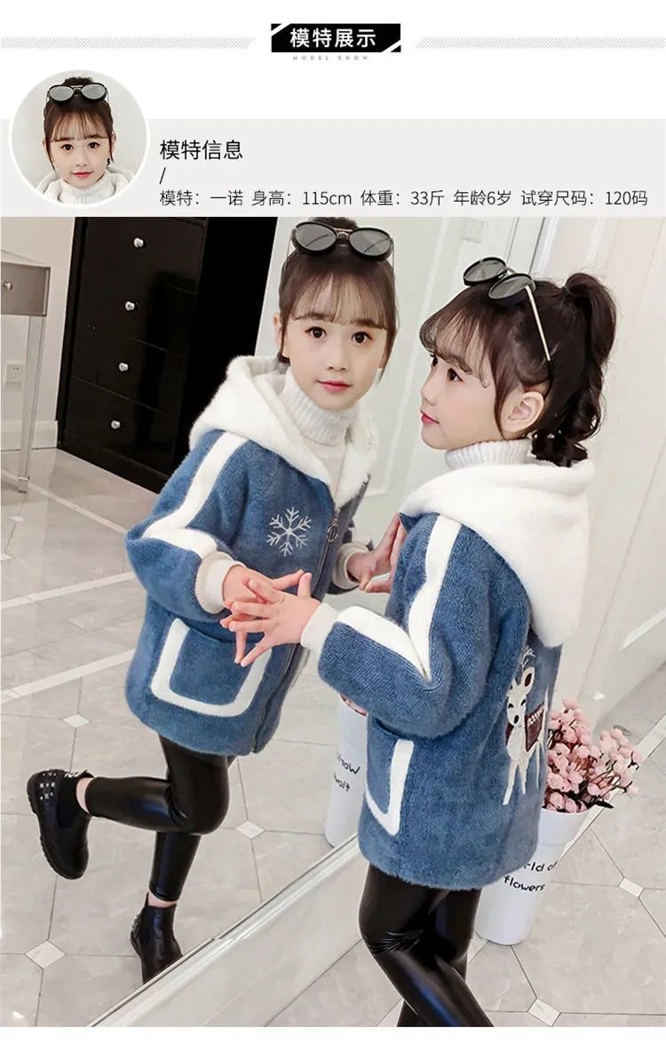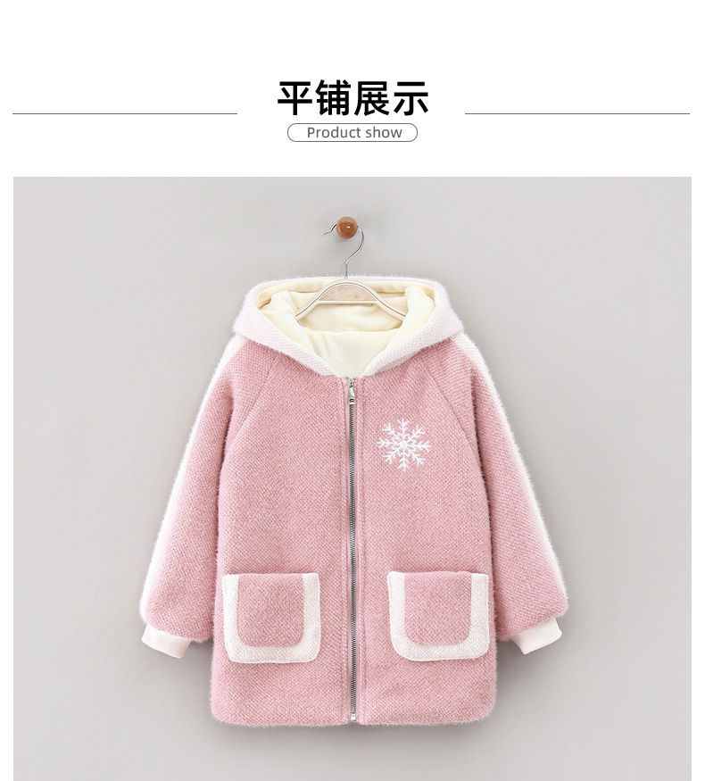 여아용 두꺼운 모직 스웨터 코트 아동용 2024 가을 겨울 새 스타일 작은 오리 따뜻하고 세련된 후드 두꺼운 탑스토어 가기